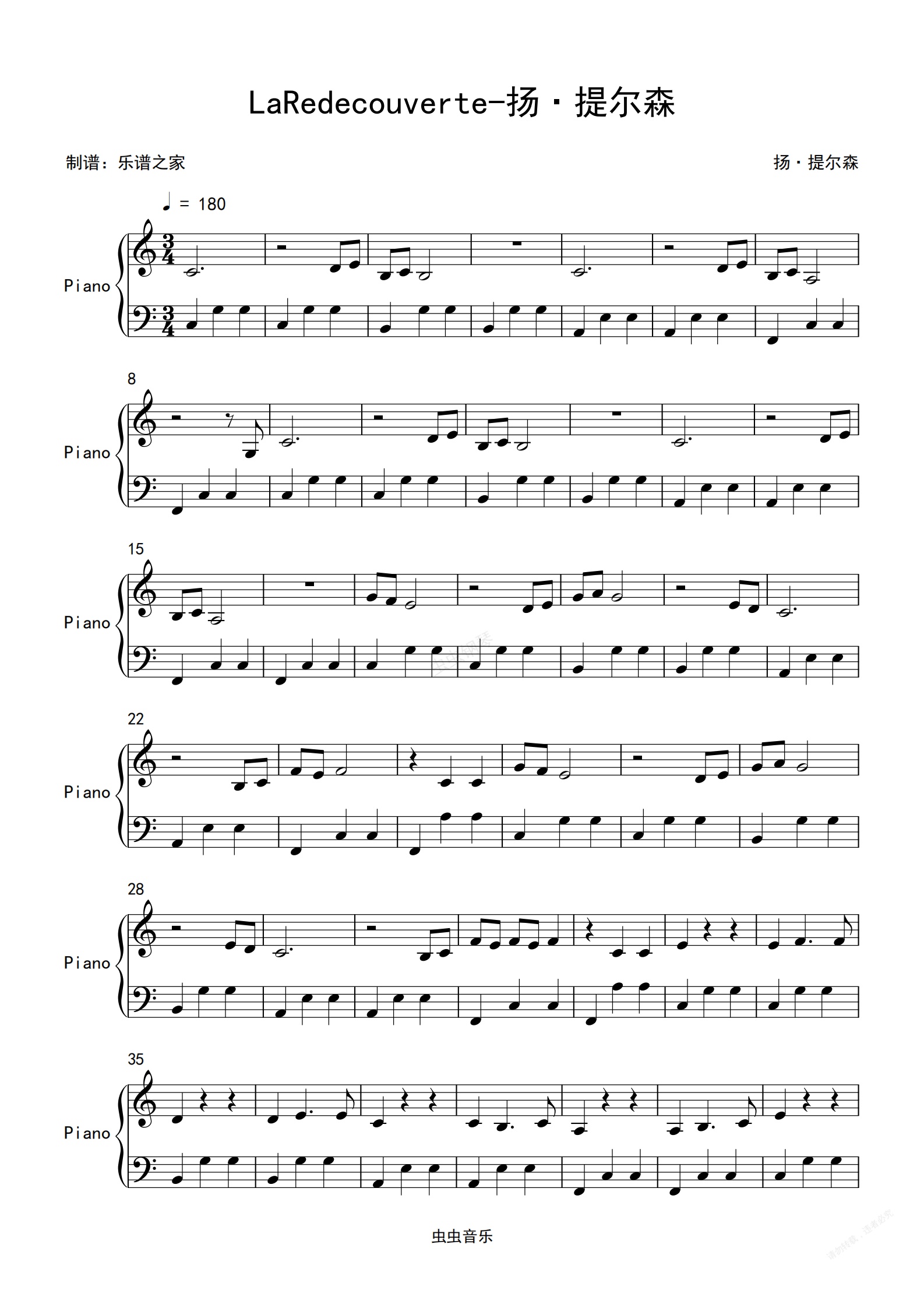 钢琴谱:LaRedecouverte-扬·提尔森C大调钢琴谱 高清乐谱 送示范音频