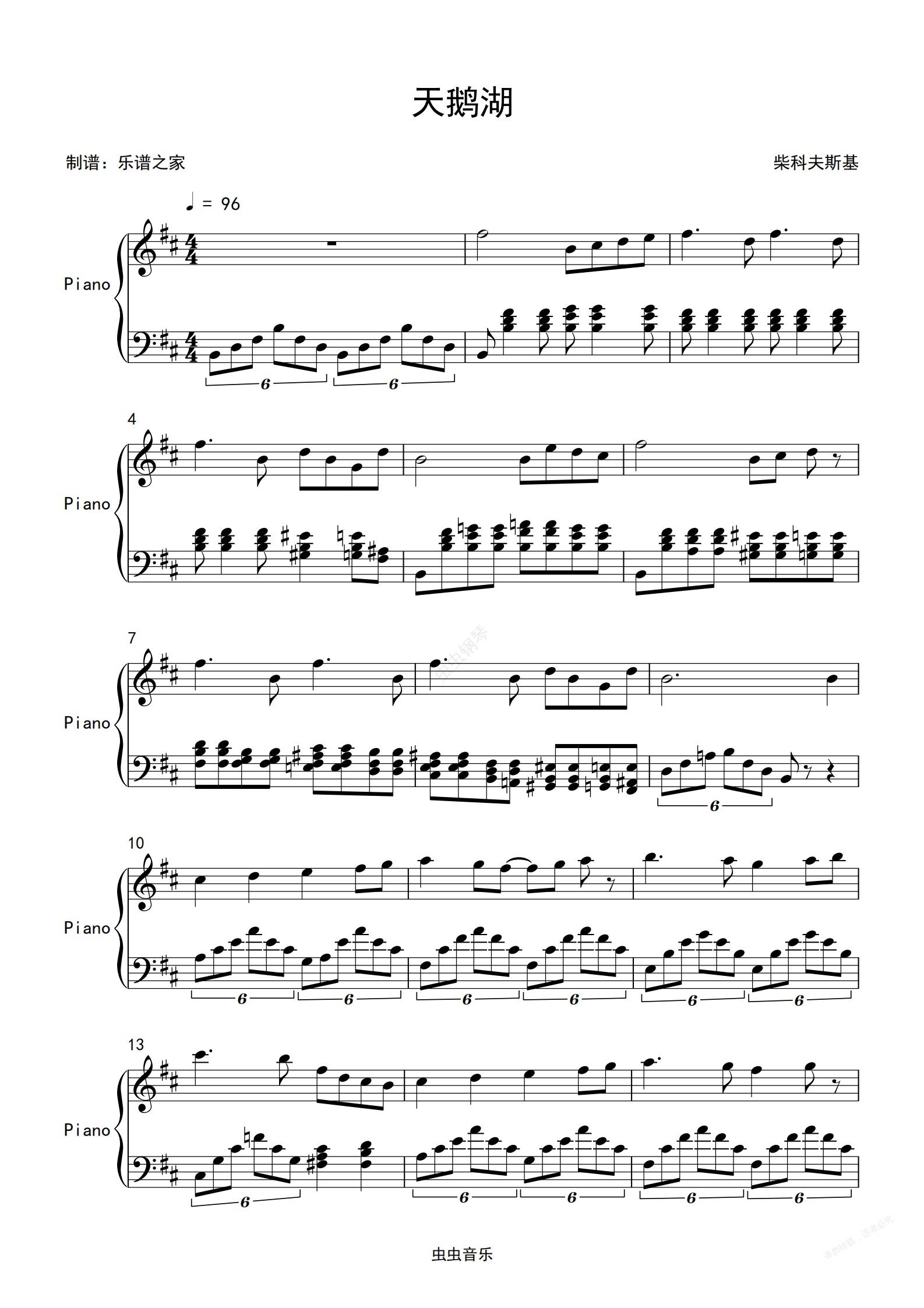 钢琴谱:天鹅湖-柴科夫斯基 钢琴谱 高清 送示范音频
