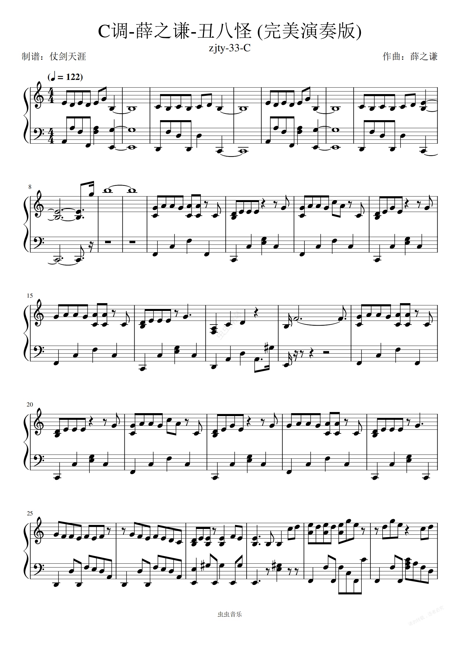 钢琴谱:C调-薛之谦-丑八怪 (完美演奏版)
