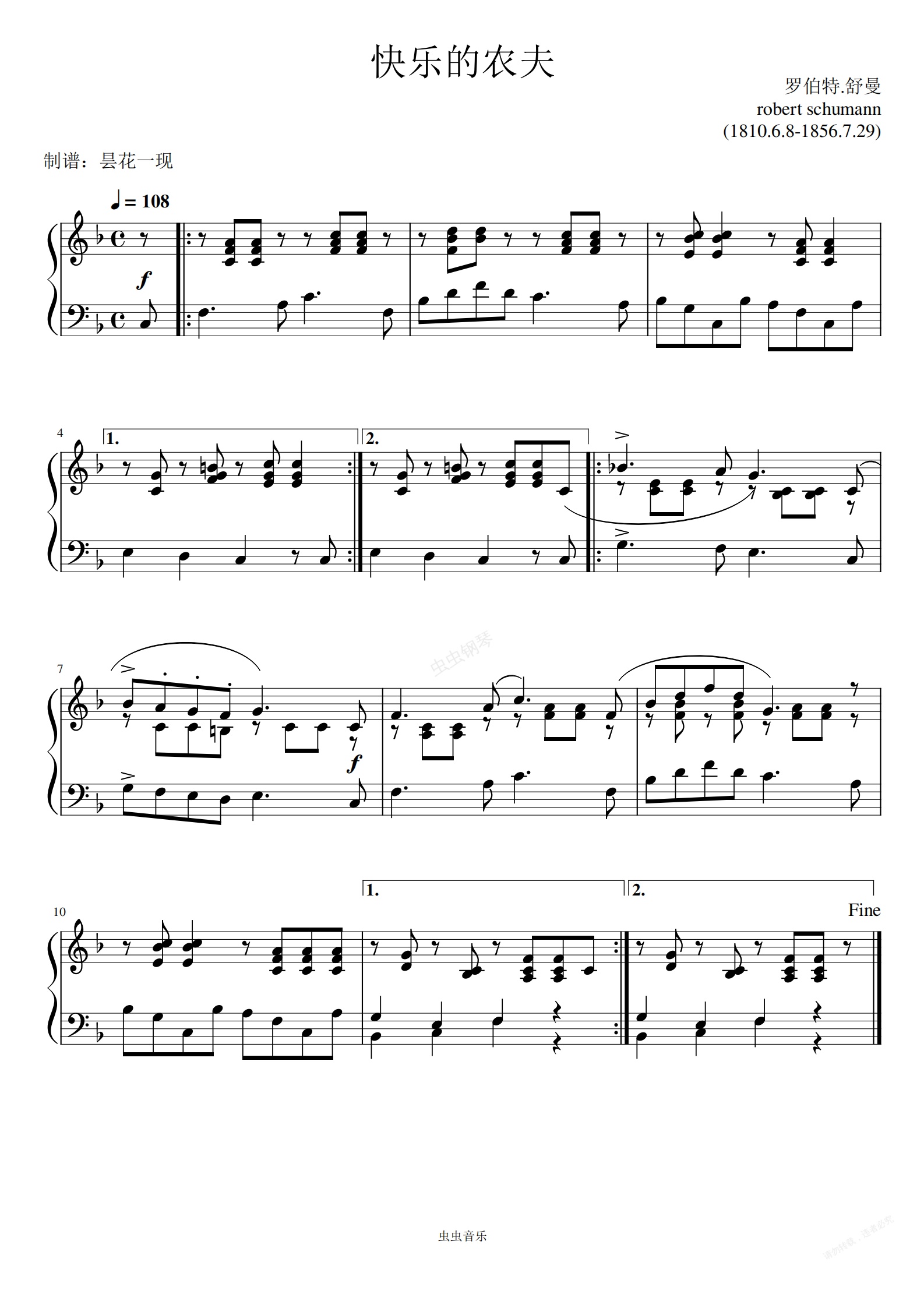 钢琴谱:快乐的农夫 舒曼-经典版