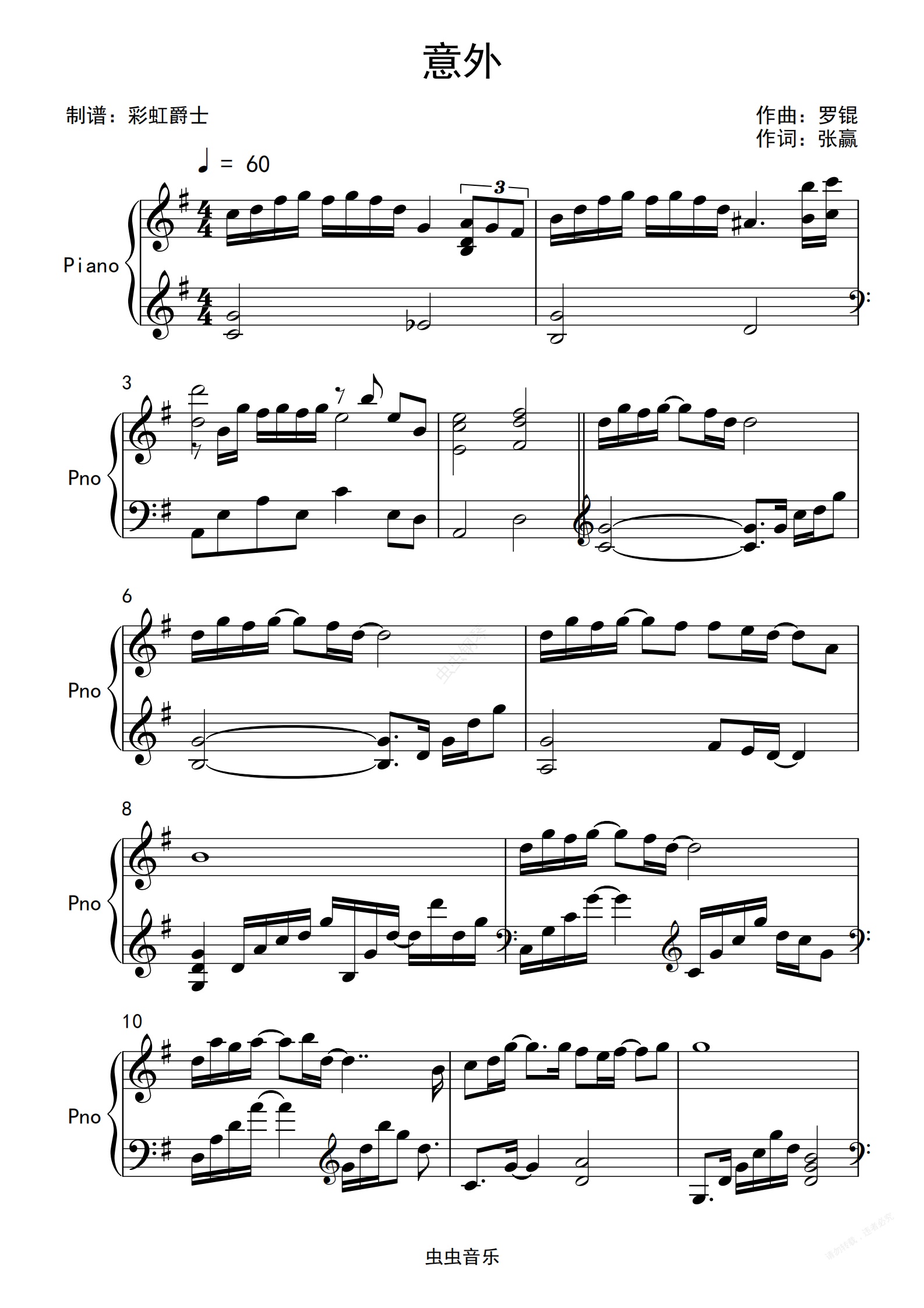 钢琴谱:意外-你是我的城池营垒片尾曲 简单版 叶炫清 陈雪燃