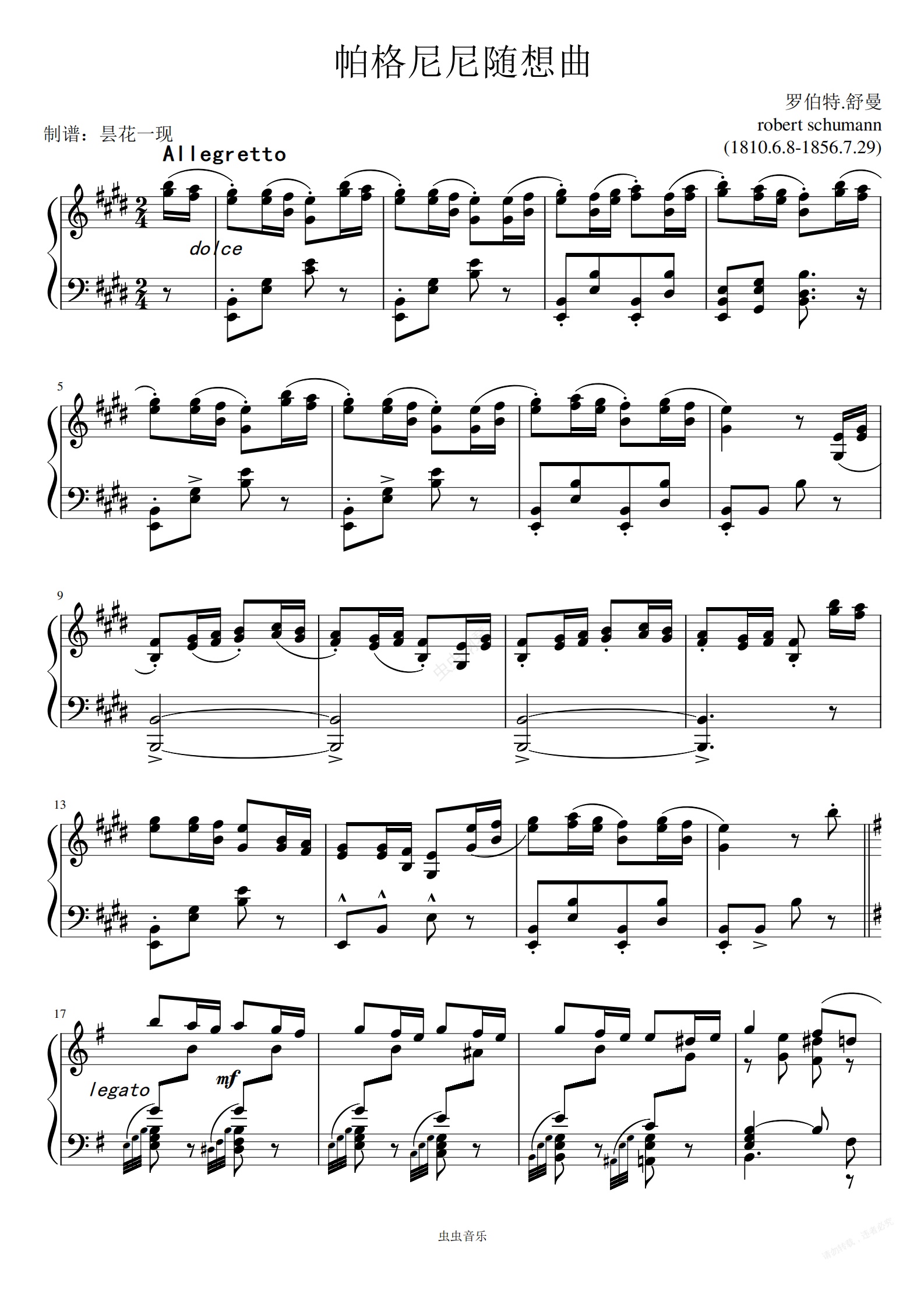钢琴谱:帕格尼尼随想曲(狩猎)舒曼