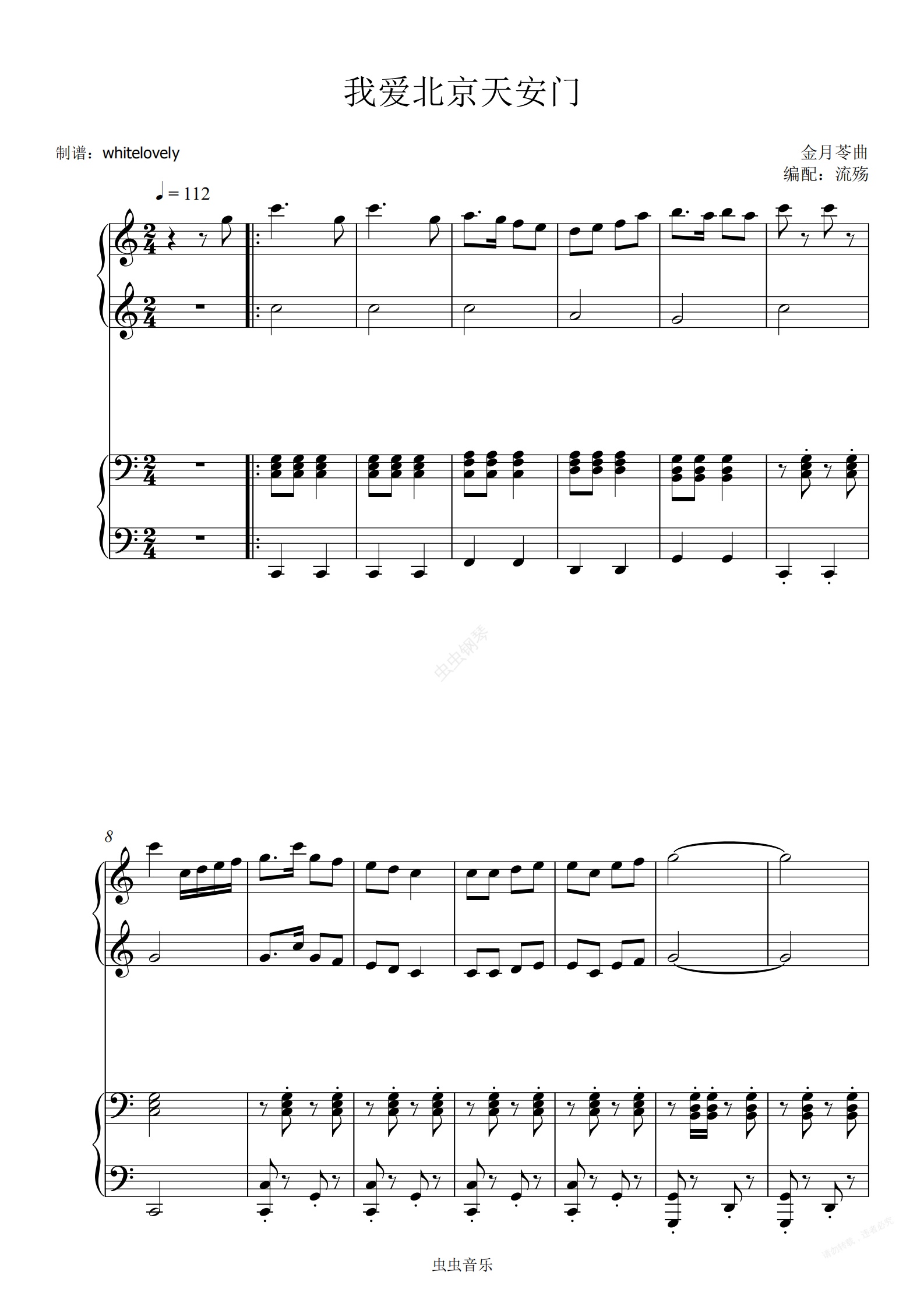钢琴谱:我爱北京天安门 C调简易四手联弹