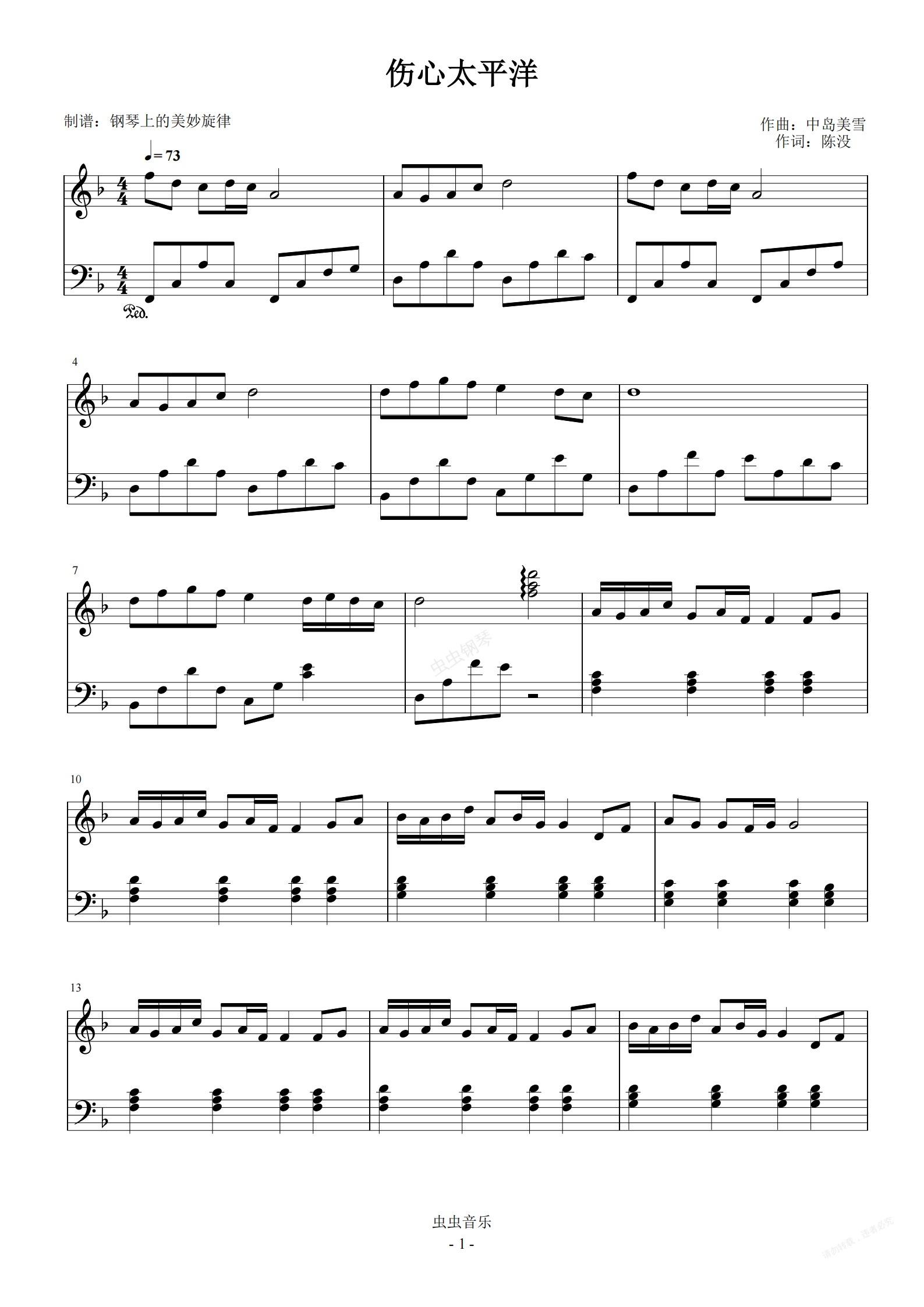 钢琴谱:伤心太平洋 简易版 任贤齐 流行经典