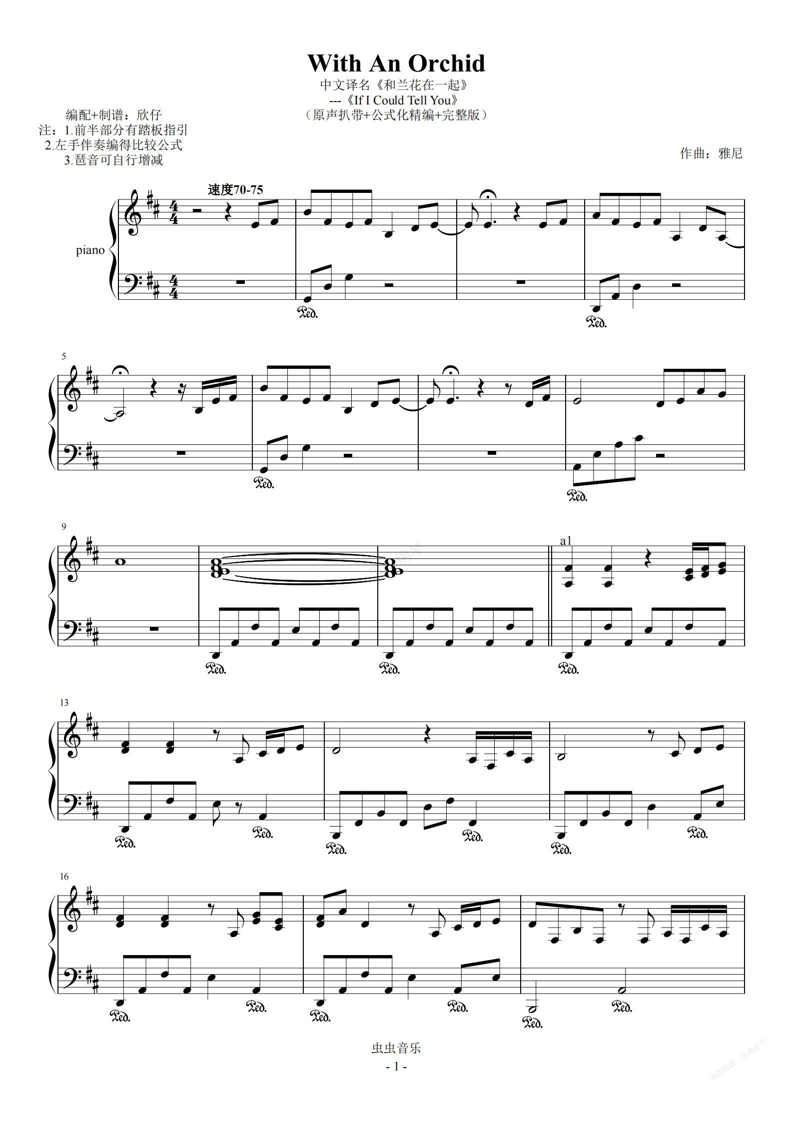 钢琴谱:雅尼-D《With An Orchid》(原声扒带+公式化精编+完整版)