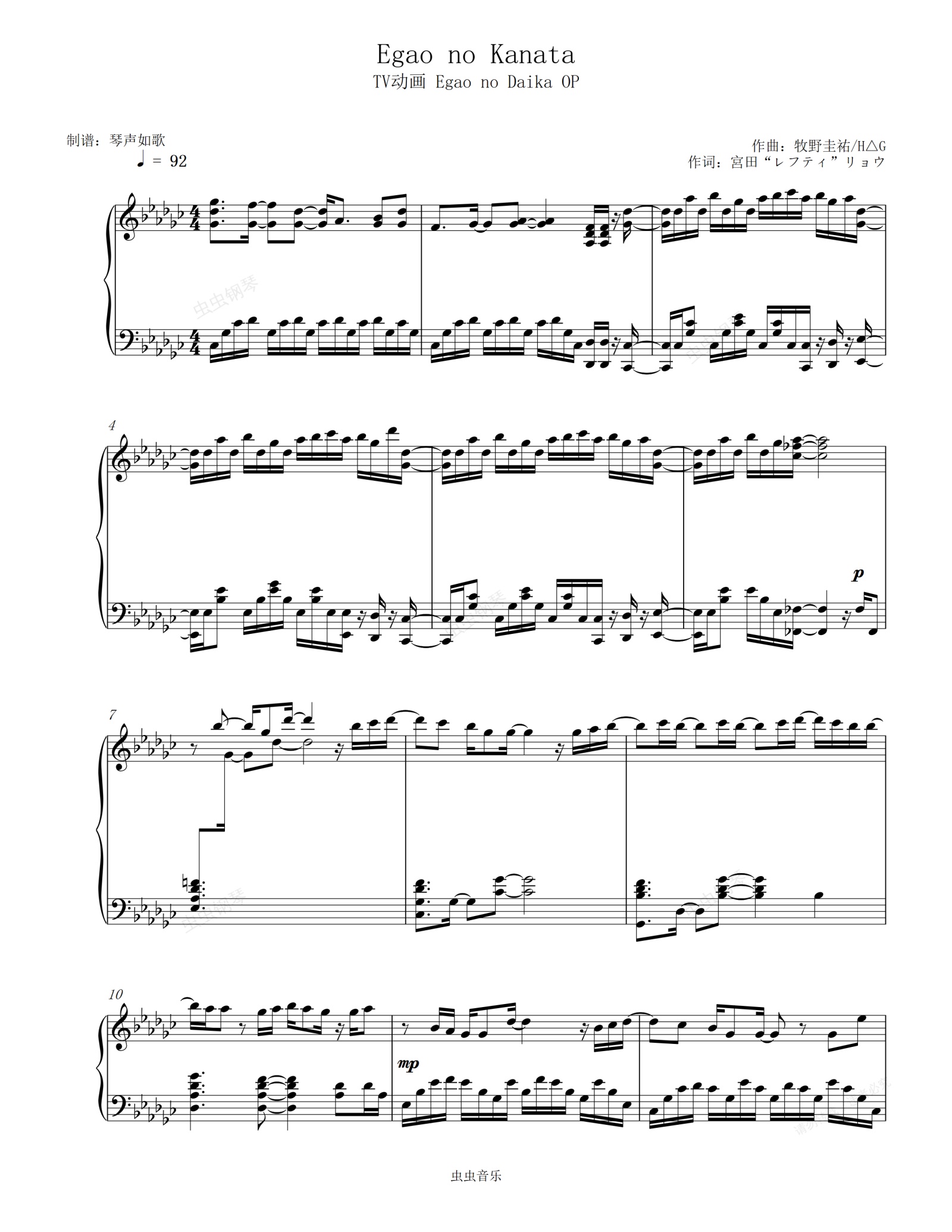 钢琴谱:TV动画 Egao no Daika OP -Egao no Kanata