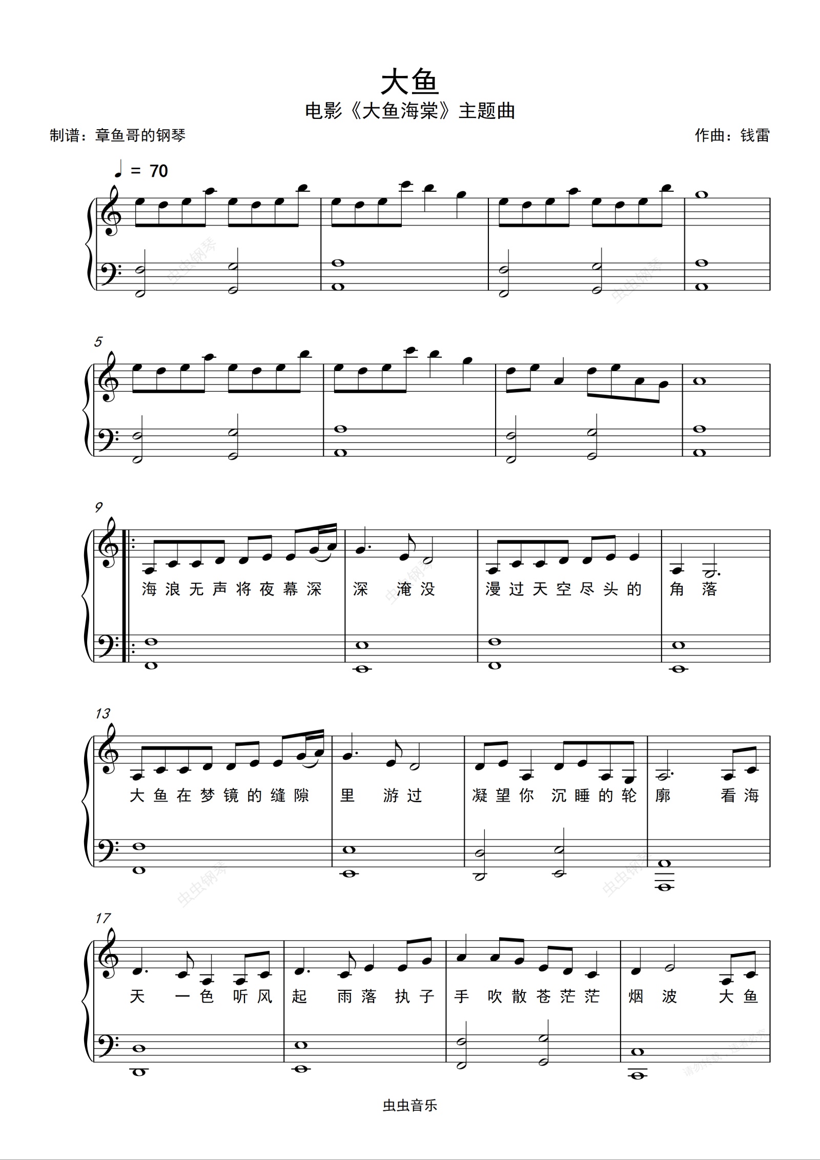 钢琴谱:《大鱼》海底屋音乐(超简单,3分钟学会)