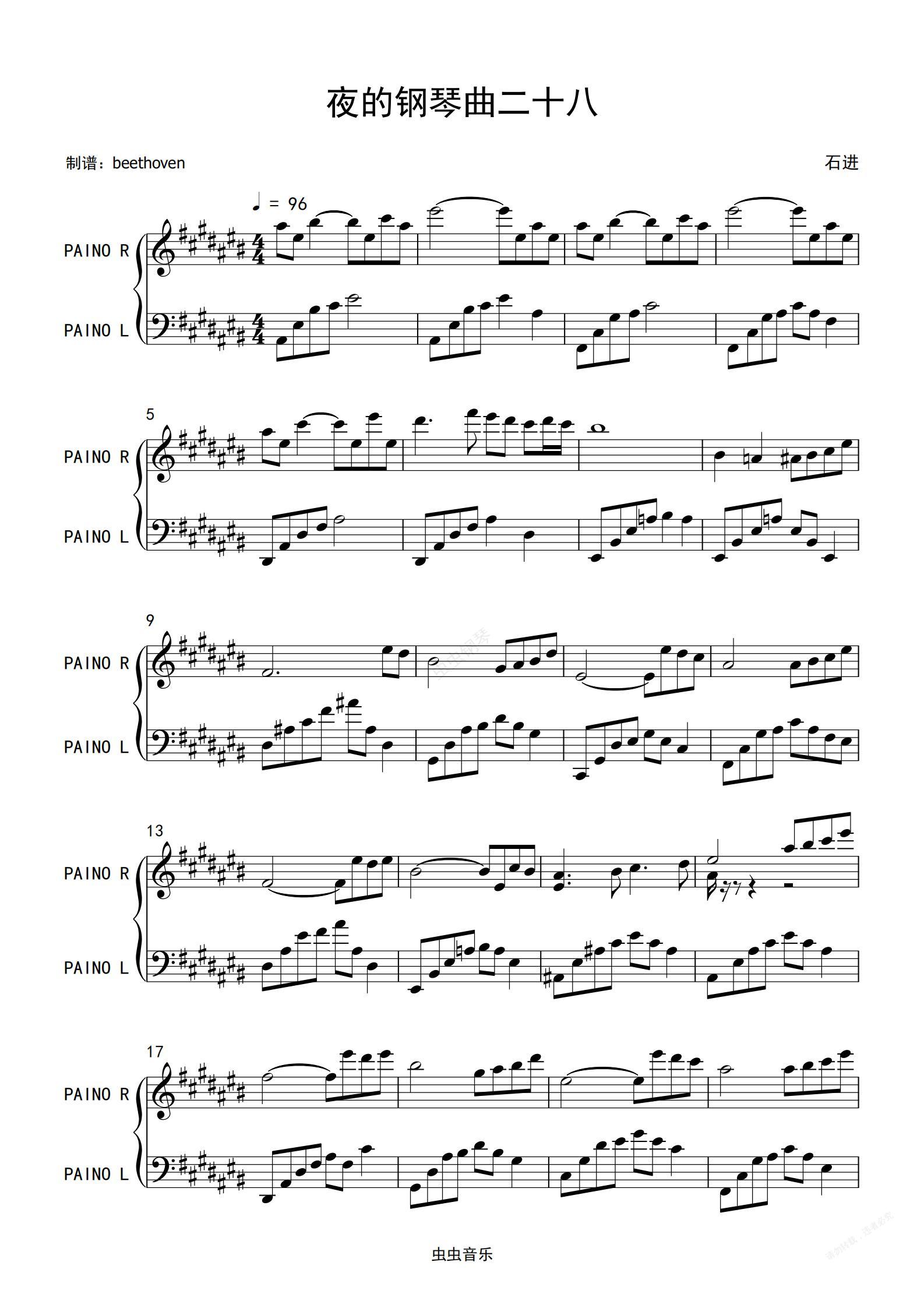 钢琴谱:夜的钢琴曲(二十八)_惜别_石进