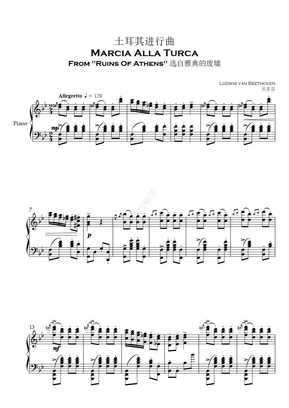 钢琴谱:贝多芬-土耳其进行曲
