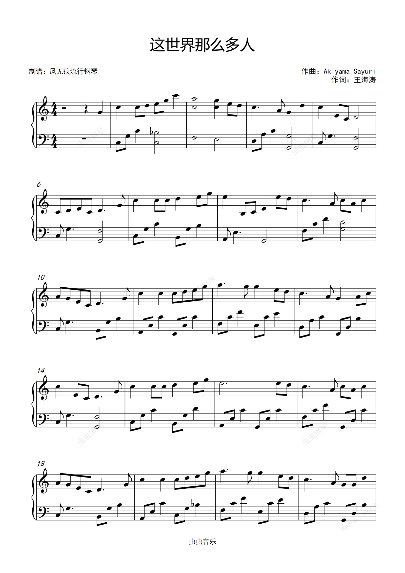 钢琴谱:这世界那么多人-莫文蔚〖简易动听〗