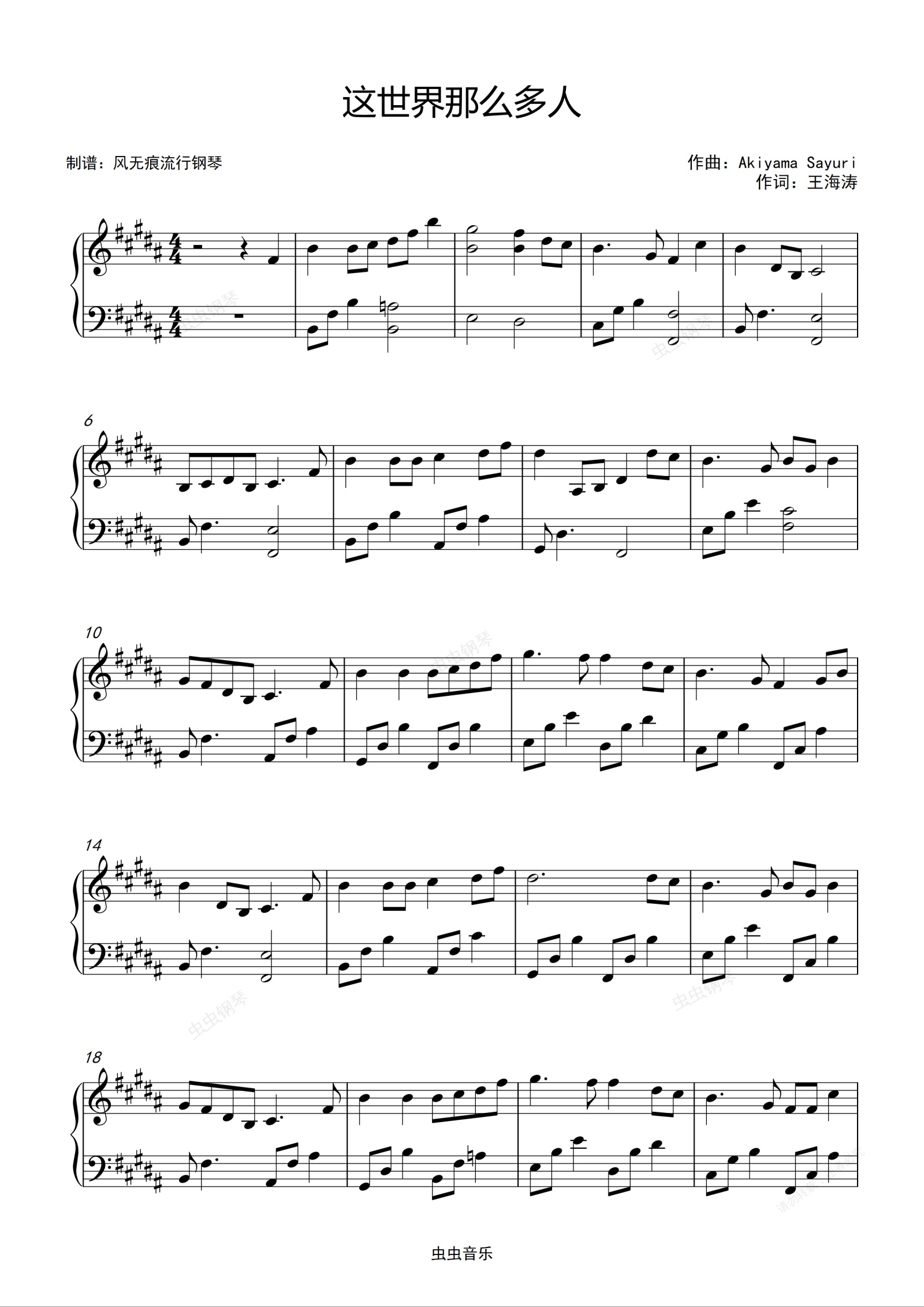 钢琴谱:原调-这世界那么多人-莫文蔚〖简易动听〗