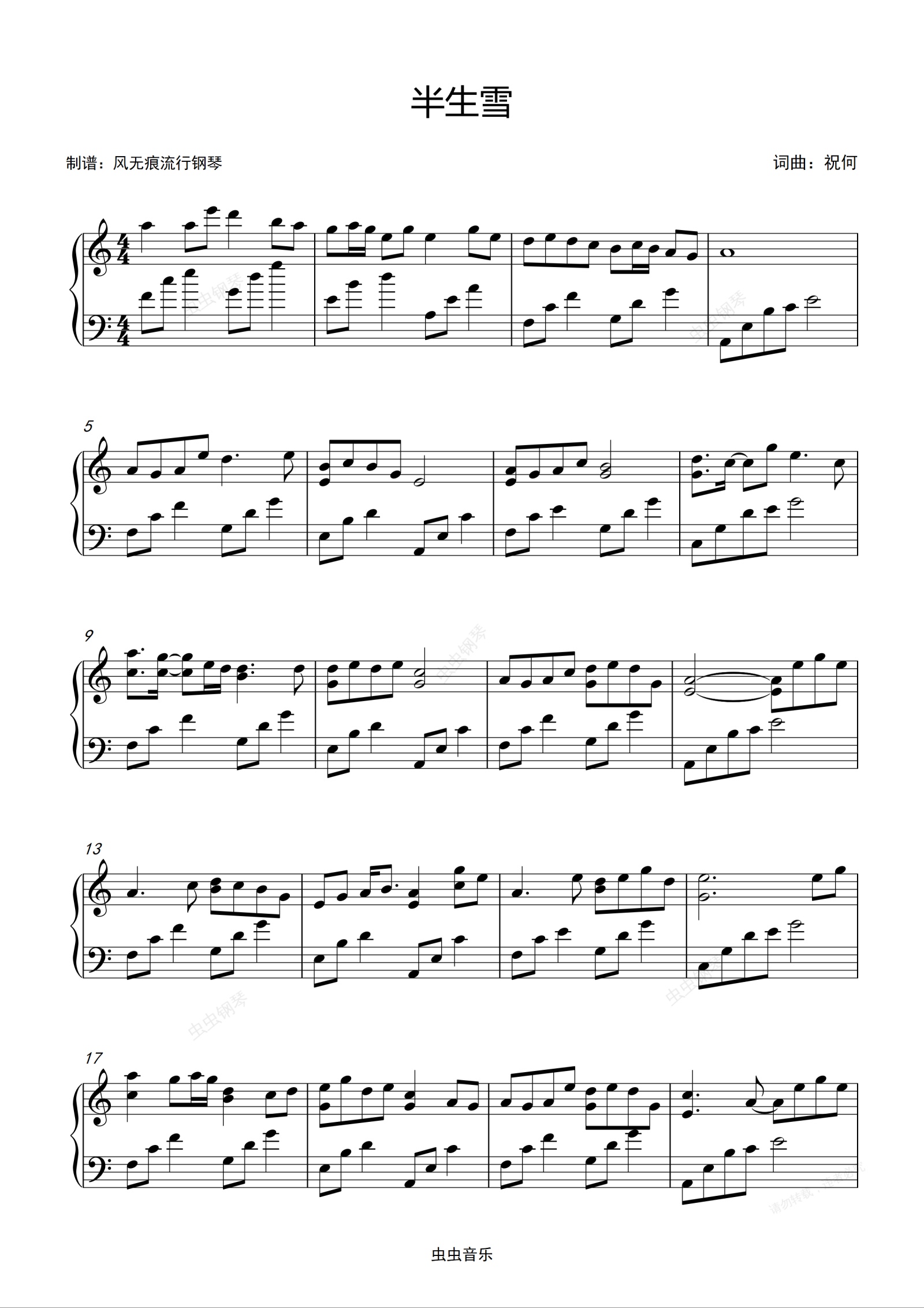 钢琴谱:C调-半生雪-是七叔呢〖丰富版〗