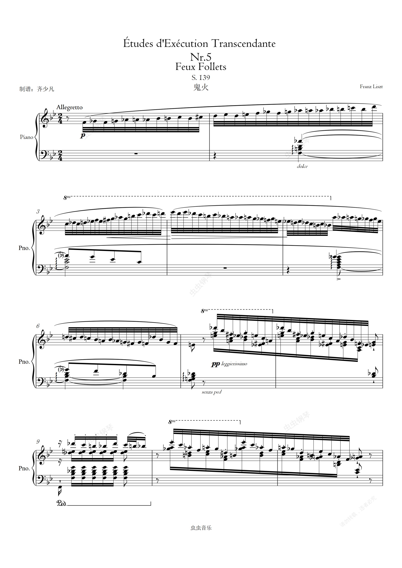 钢琴谱:鬼火-李斯特超技练习曲第五首