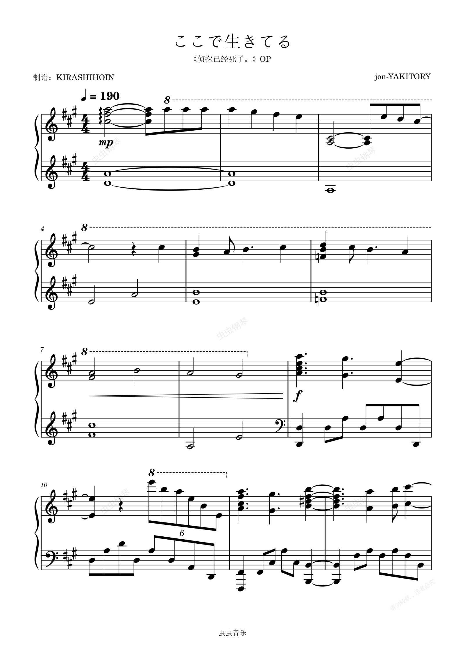 钢琴谱:生存于此/ここで生きてる(动漫《侦探已经死了。》OP)- めありー/jon-YAKITORY