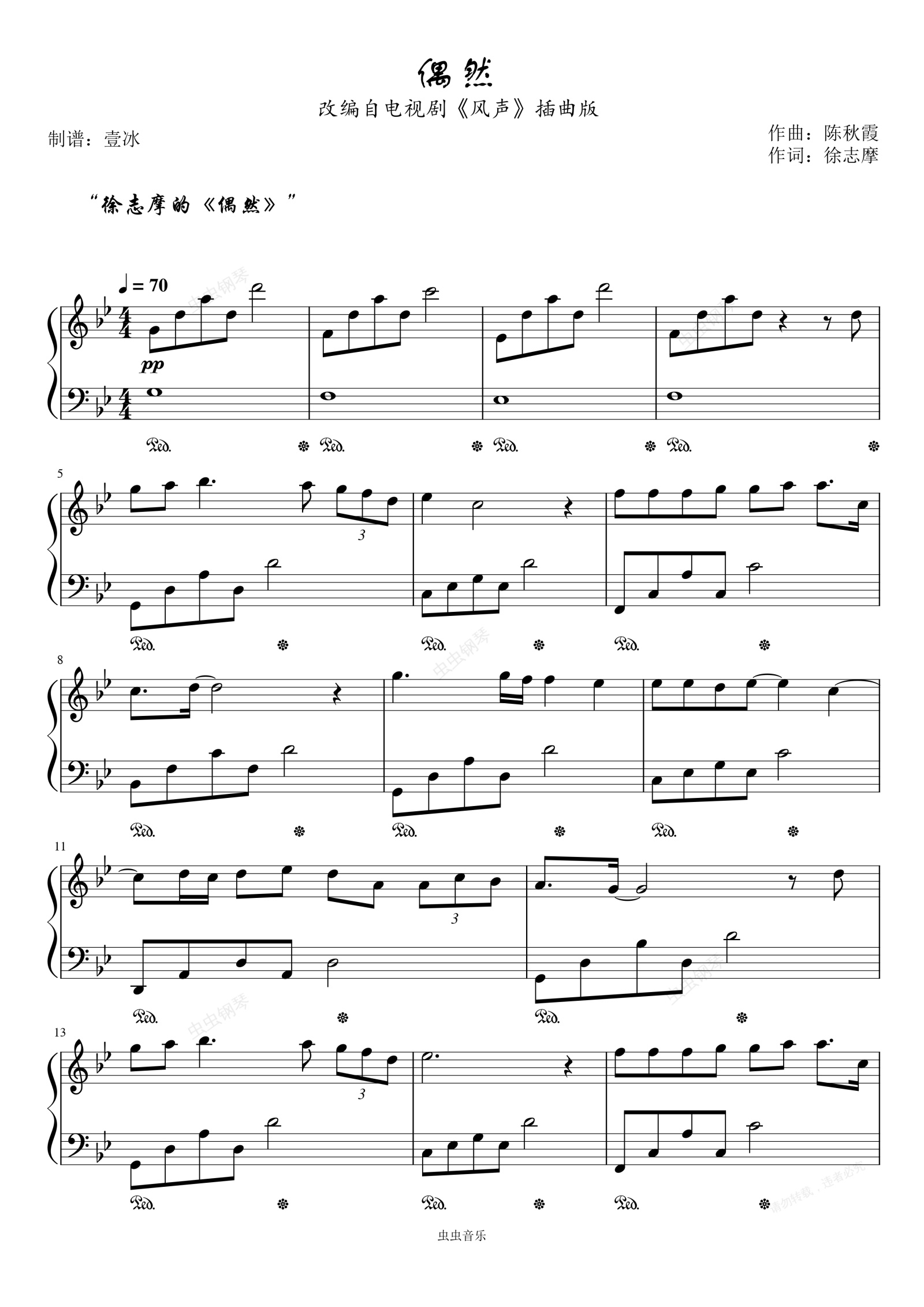 钢琴谱:偶然//改编自《风声》插曲版-原调版