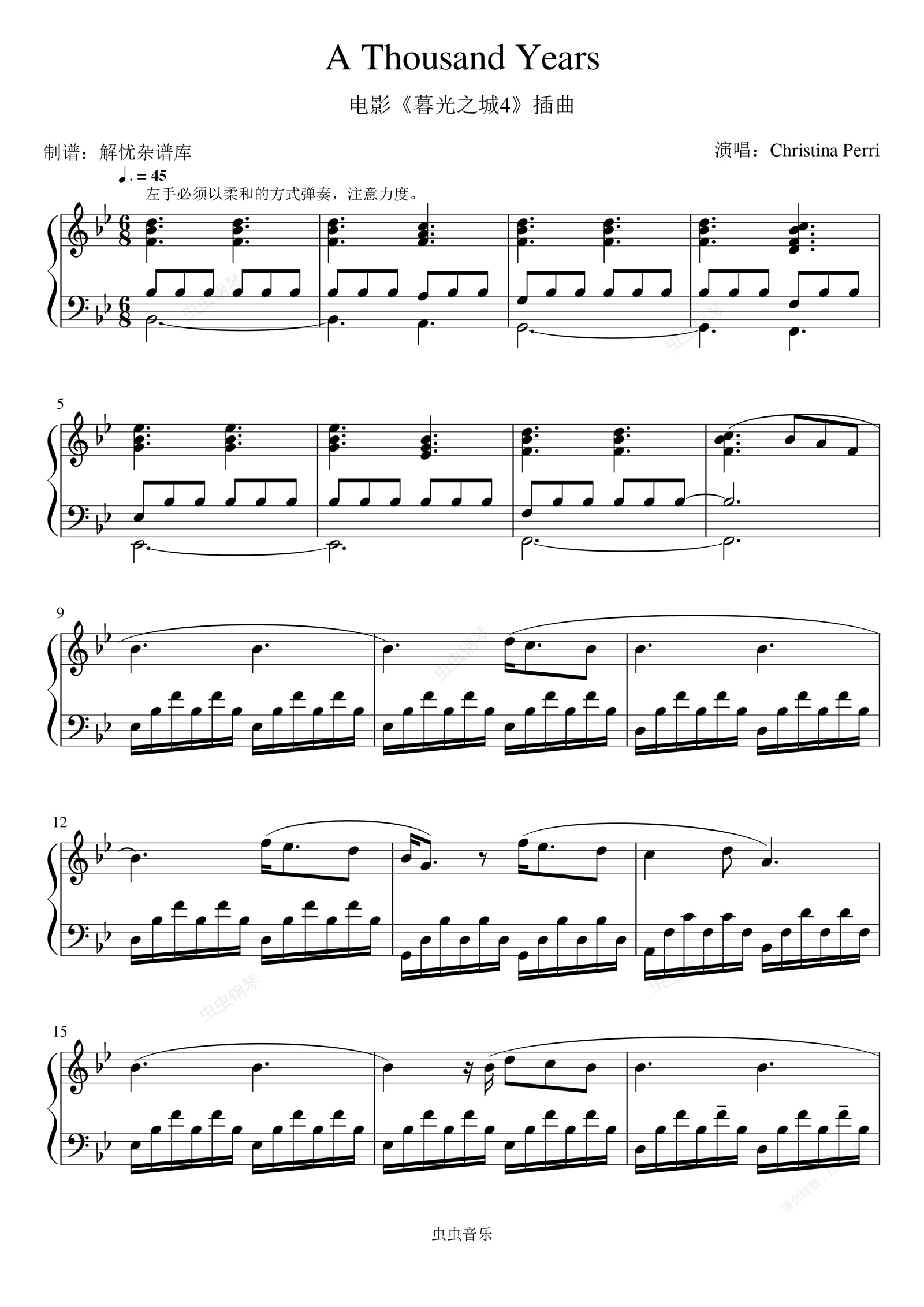 钢琴谱:A Thousand Years电影《暮光之城4》插曲