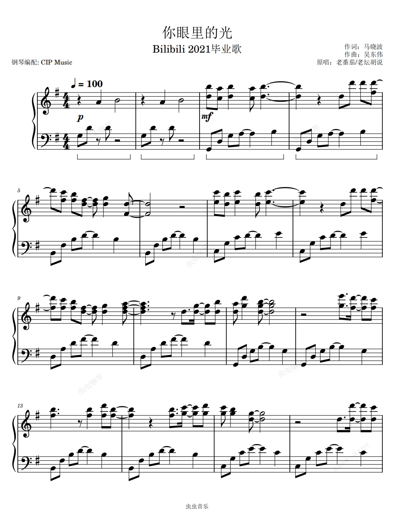 钢琴谱:《你眼里的光》B站2021毕业歌