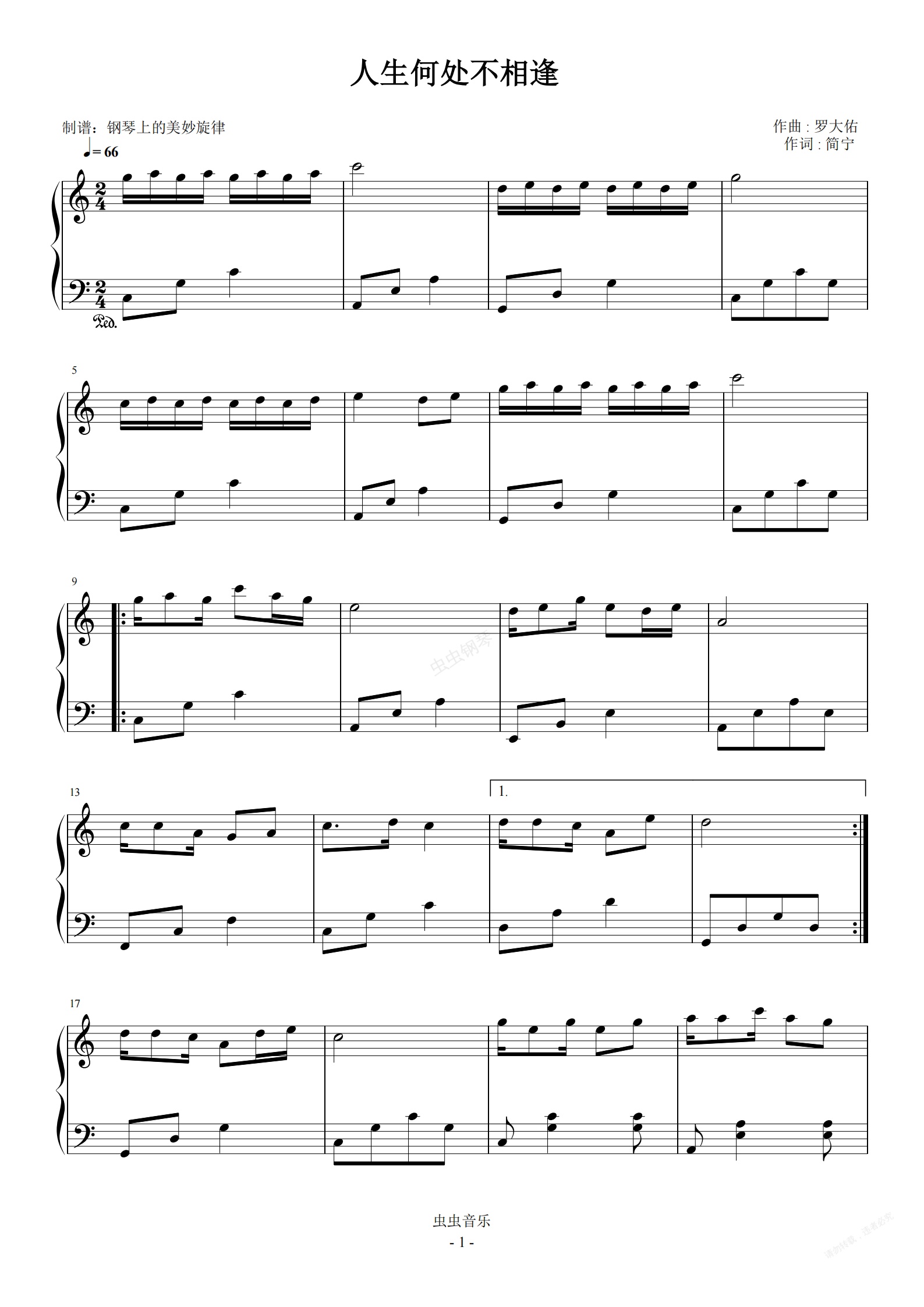 钢琴谱:人生何处不相逢 C调简易版 陈慧娴