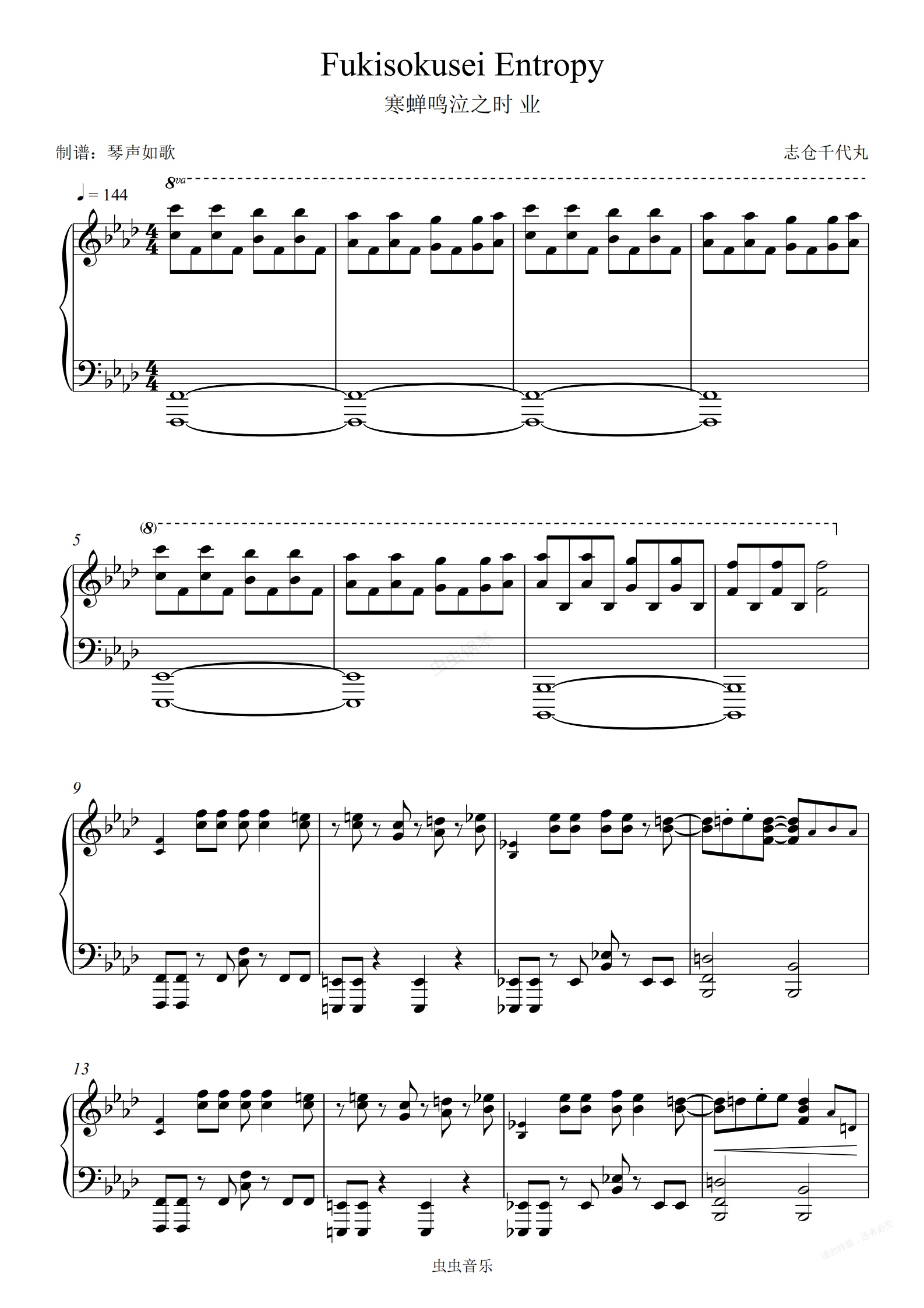 钢琴谱:寒蝉鸣泣之时 业-Fukisokusei Entropy
