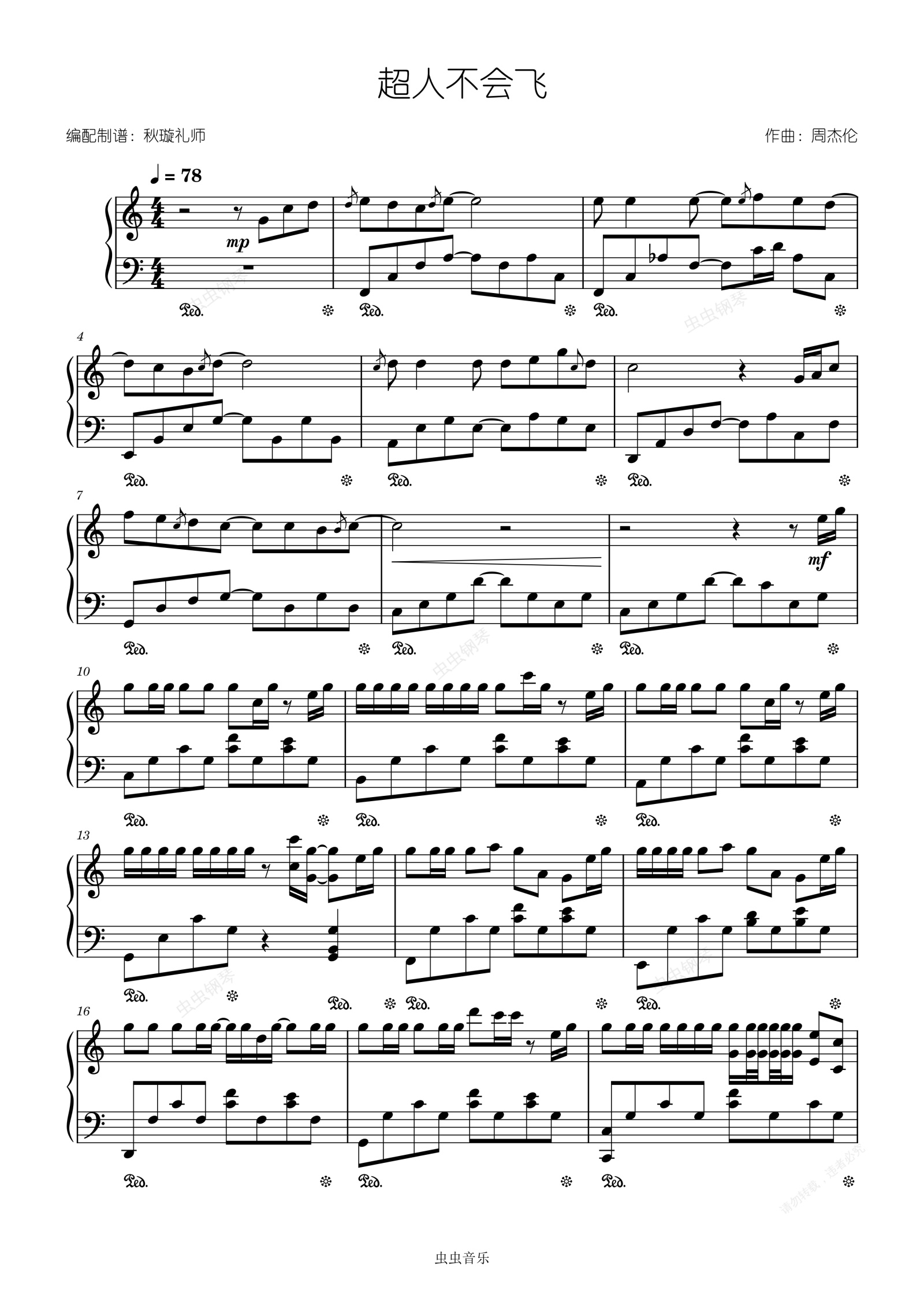 7月16号是周杰伦日,也是我在虫钢入驻一周年纪念日,也许杰伦就和超人不会飞里一样,需要停一停歇好好去看看这个世界,我从《稻香》开始走到了《超人不会飞》一共23首曲子了,非常感谢支持我的粉丝朋友们,我希望自己还可以继续用心的对待杰伦的每一首歌,然后将我认为最好的曲谱献给大家,我的初心一直未变:等我写完所有杰伦的歌以后,我所得的收入都会捐献出去。