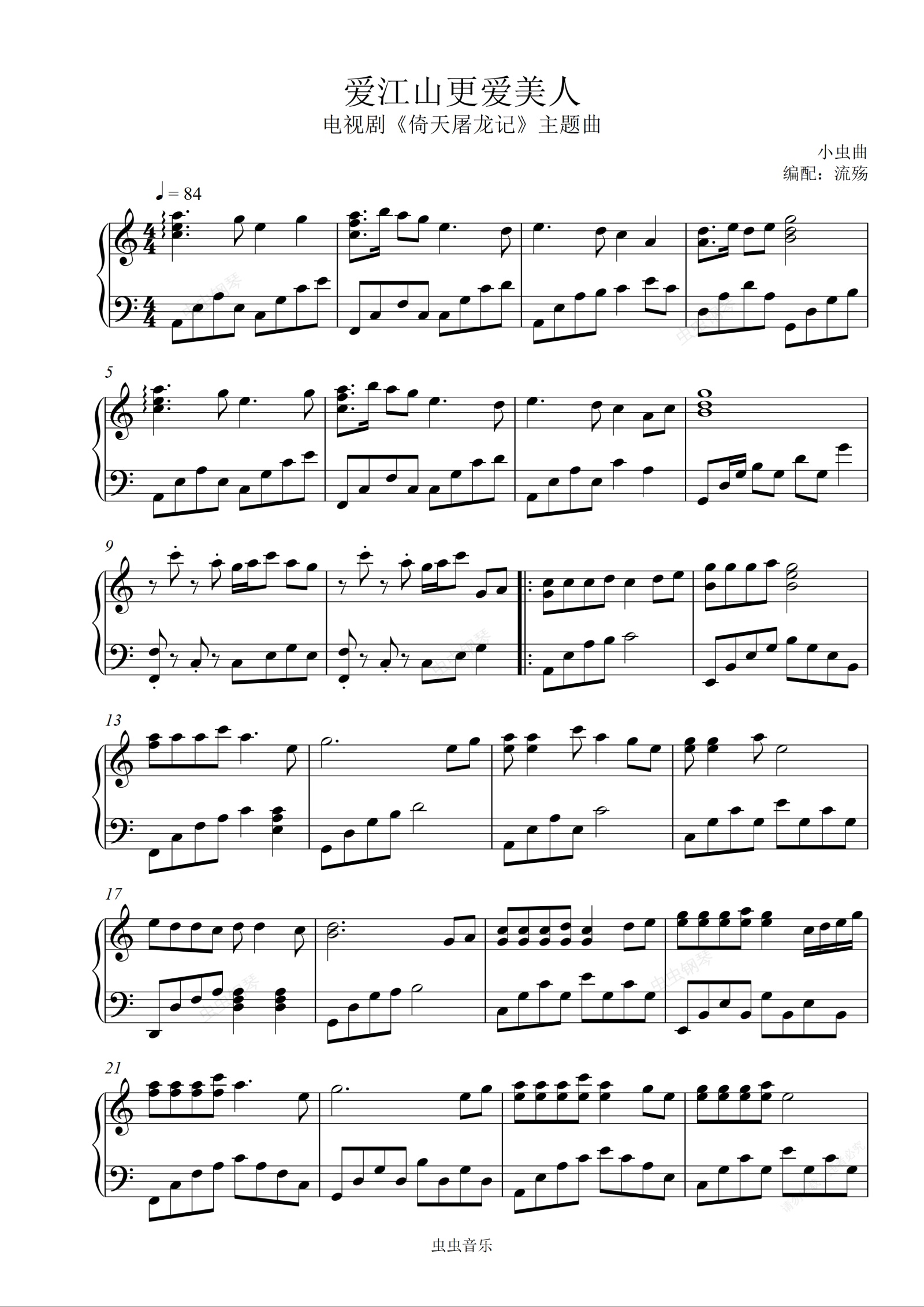钢琴谱:爱江山更爱美人 C调简单版