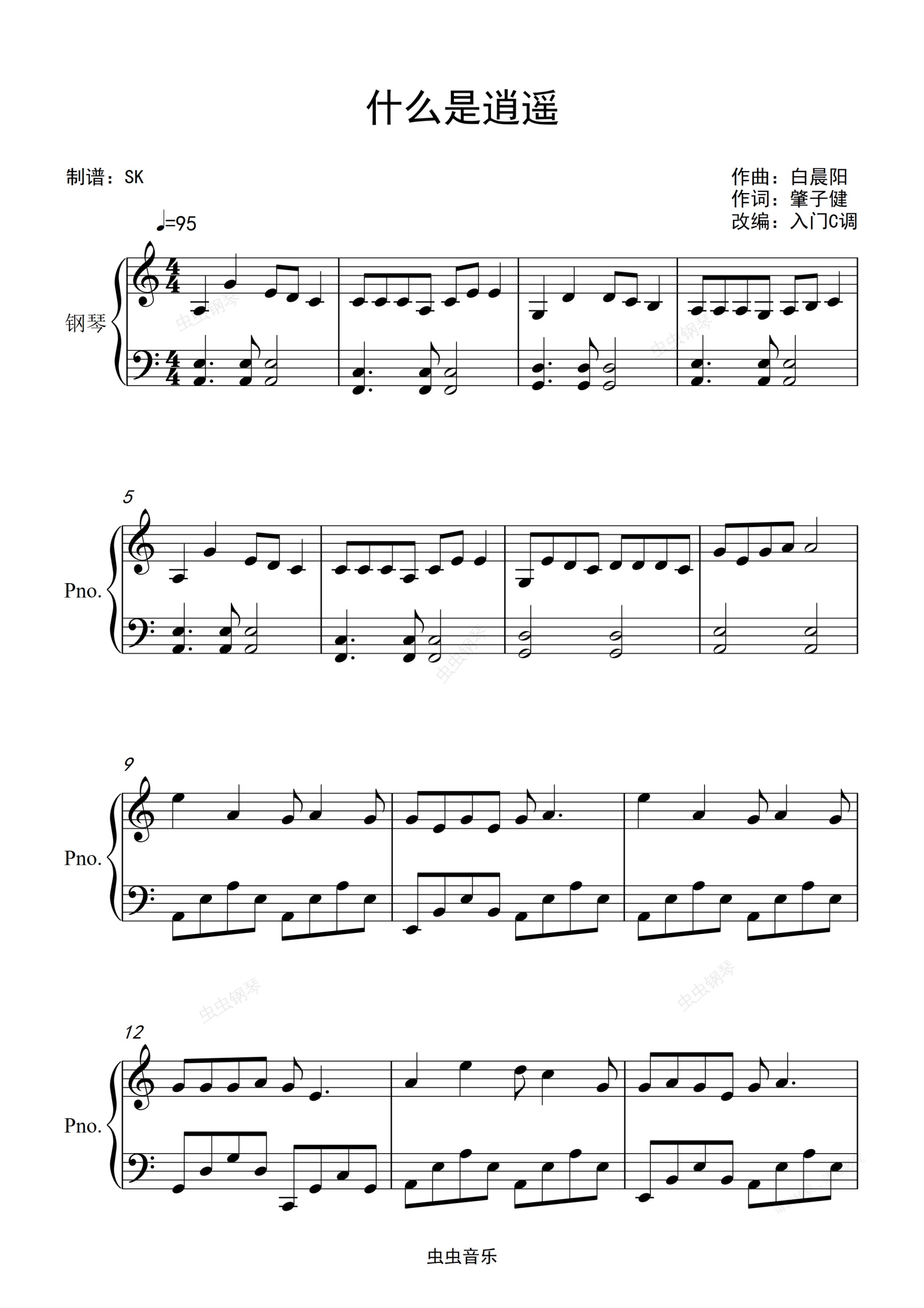 钢琴谱:王同学Able《什么是逍遥》入门C调简单版
