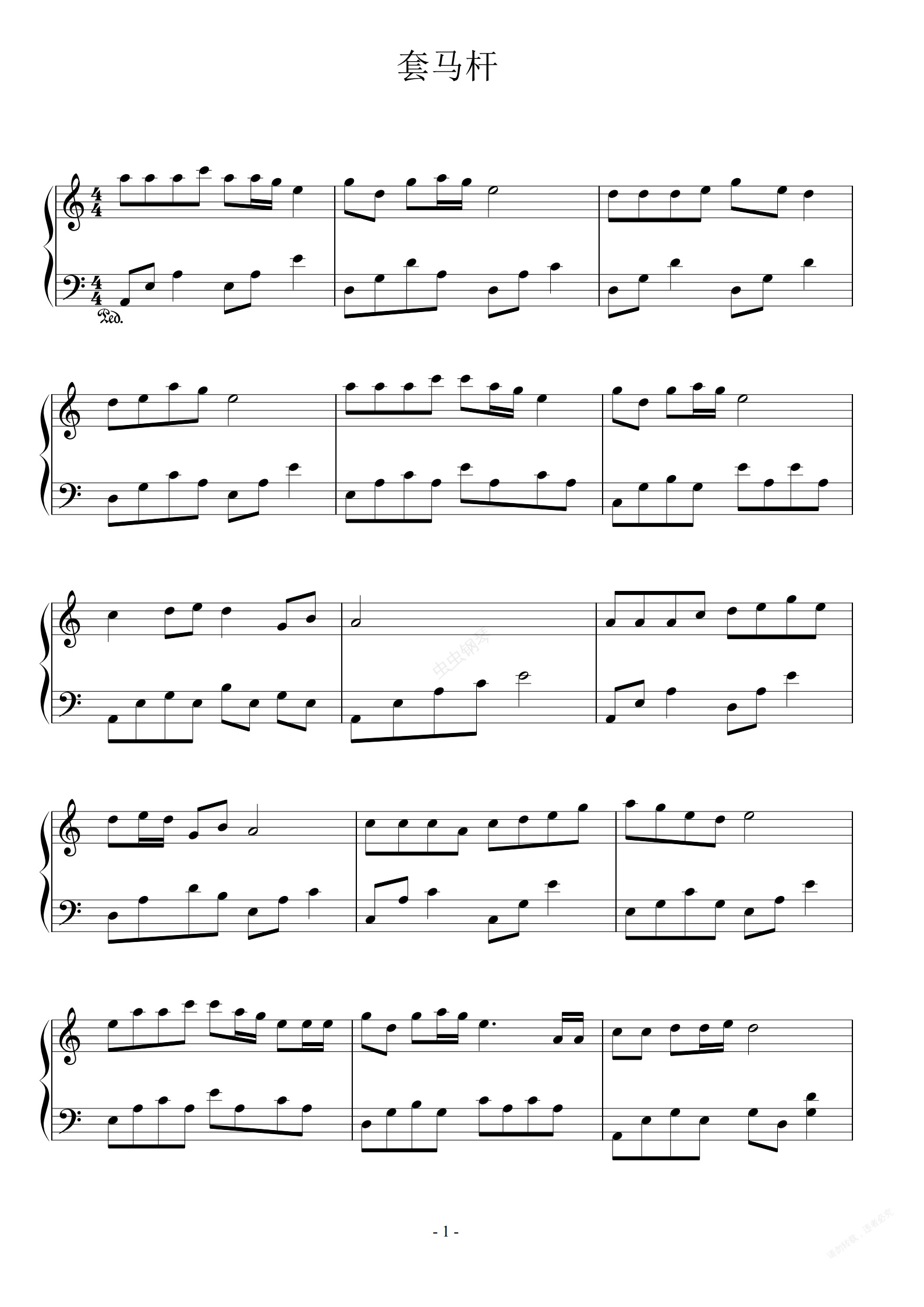钢琴谱:套马杆 C调简易版 乌兰图雅