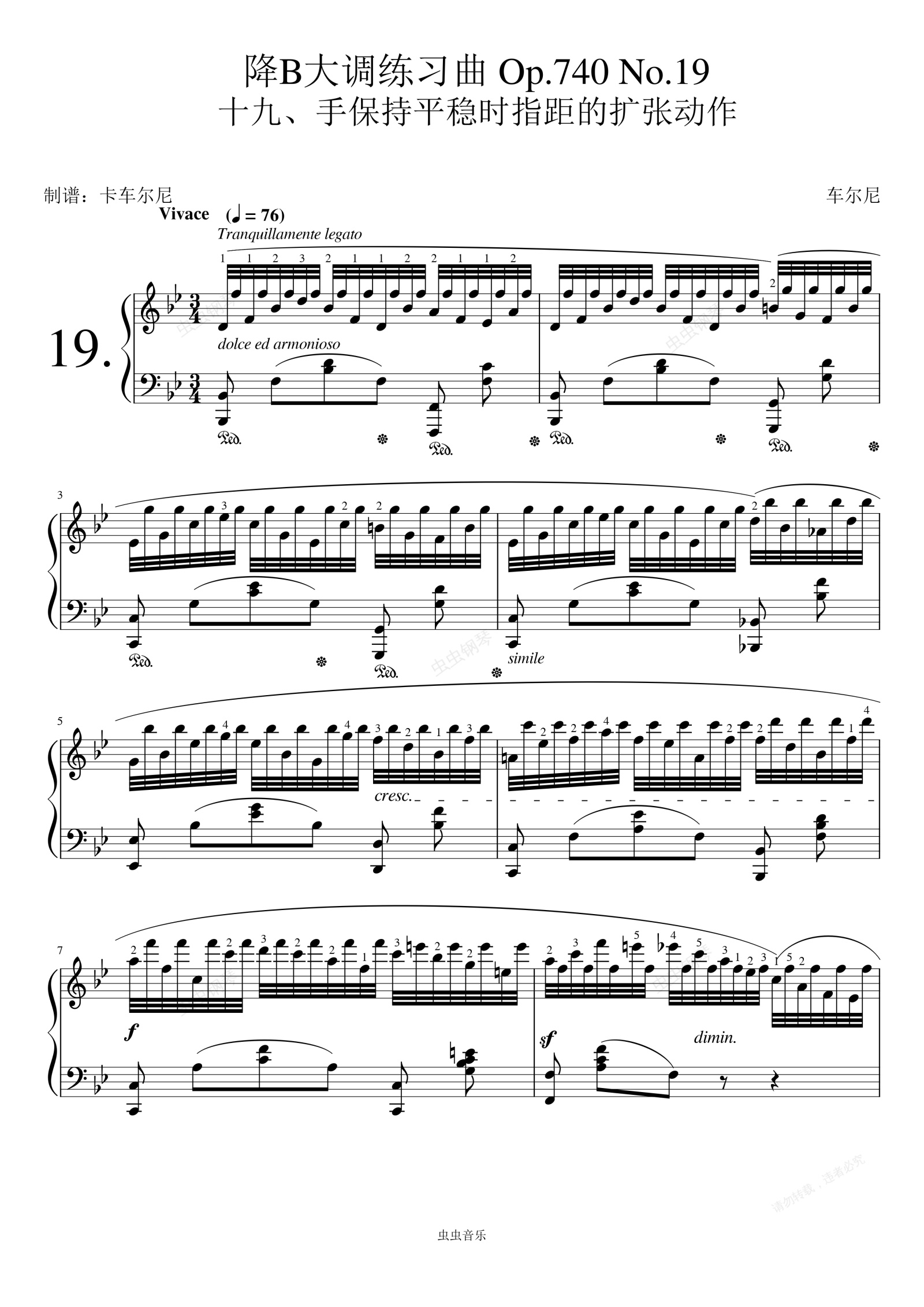 钢琴谱:车尔尼740第19条 带指法 教材版