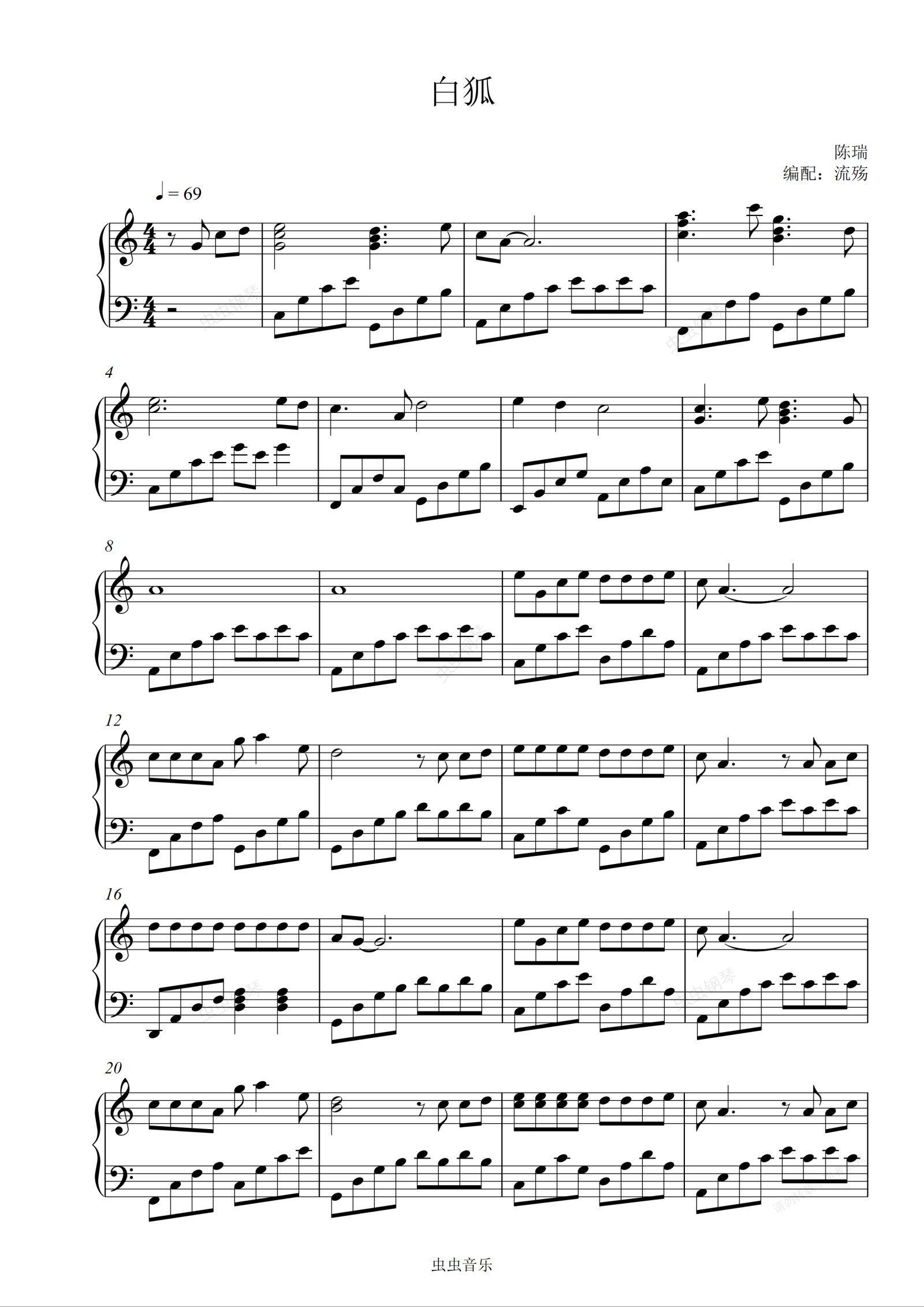 钢琴谱:白狐 C调简单版