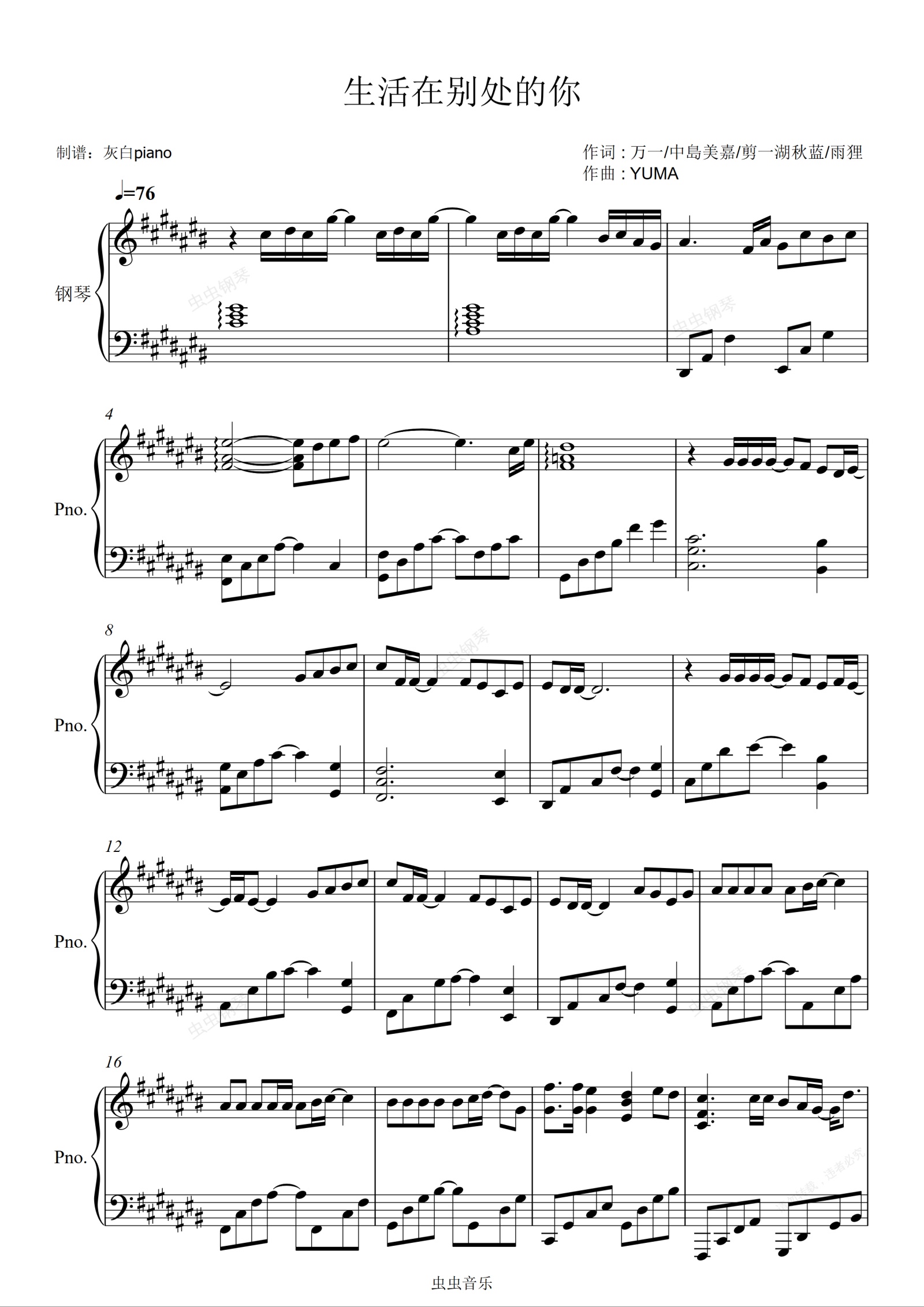 钢琴谱:《生活在别处的你》——中岛美嘉&毛不易 高度还原