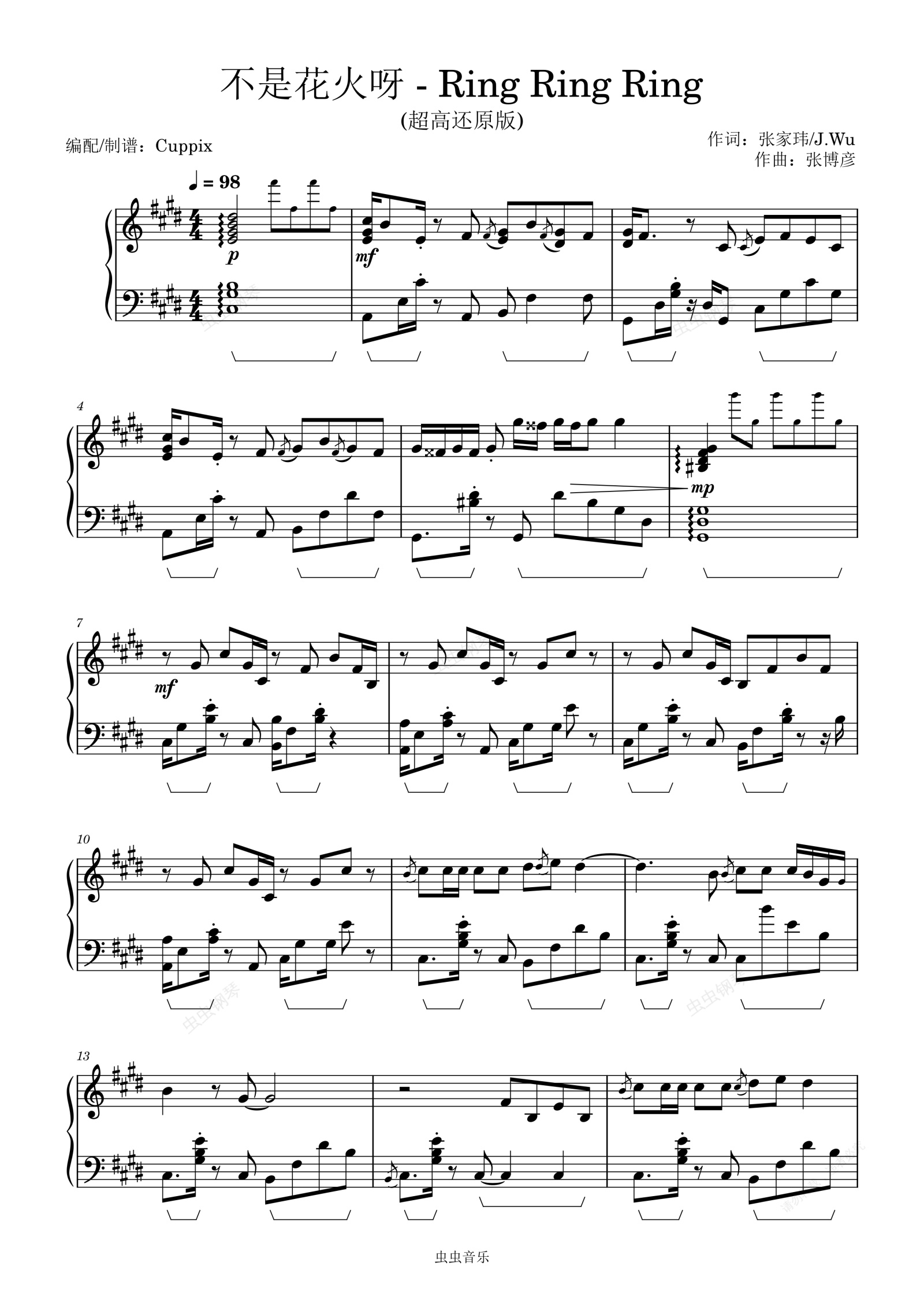 钢琴谱:Ring Ring Ring - Cuppix改编-超高还原(不是花火呀)