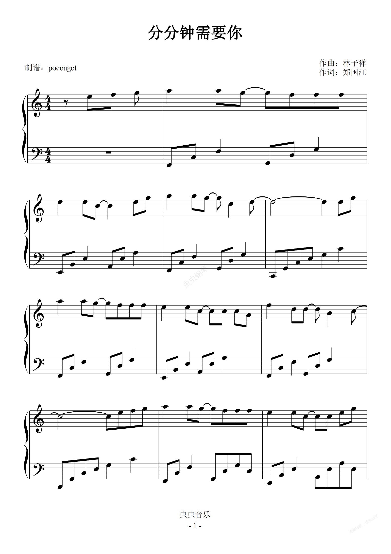 钢琴谱:《分分钟需要你》初学者版(poc编配)
