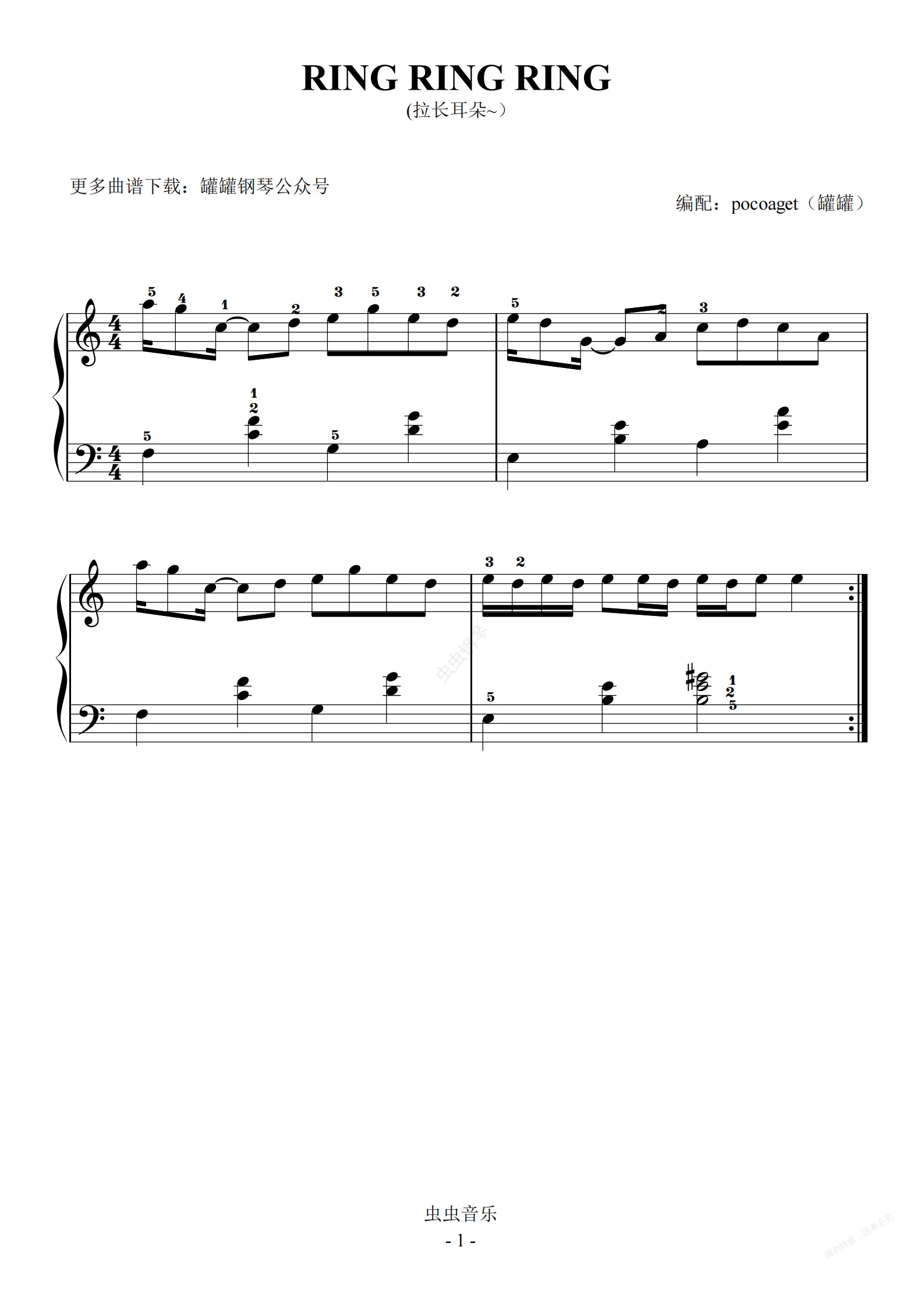 钢琴谱:RingRingRing初学者高潮段