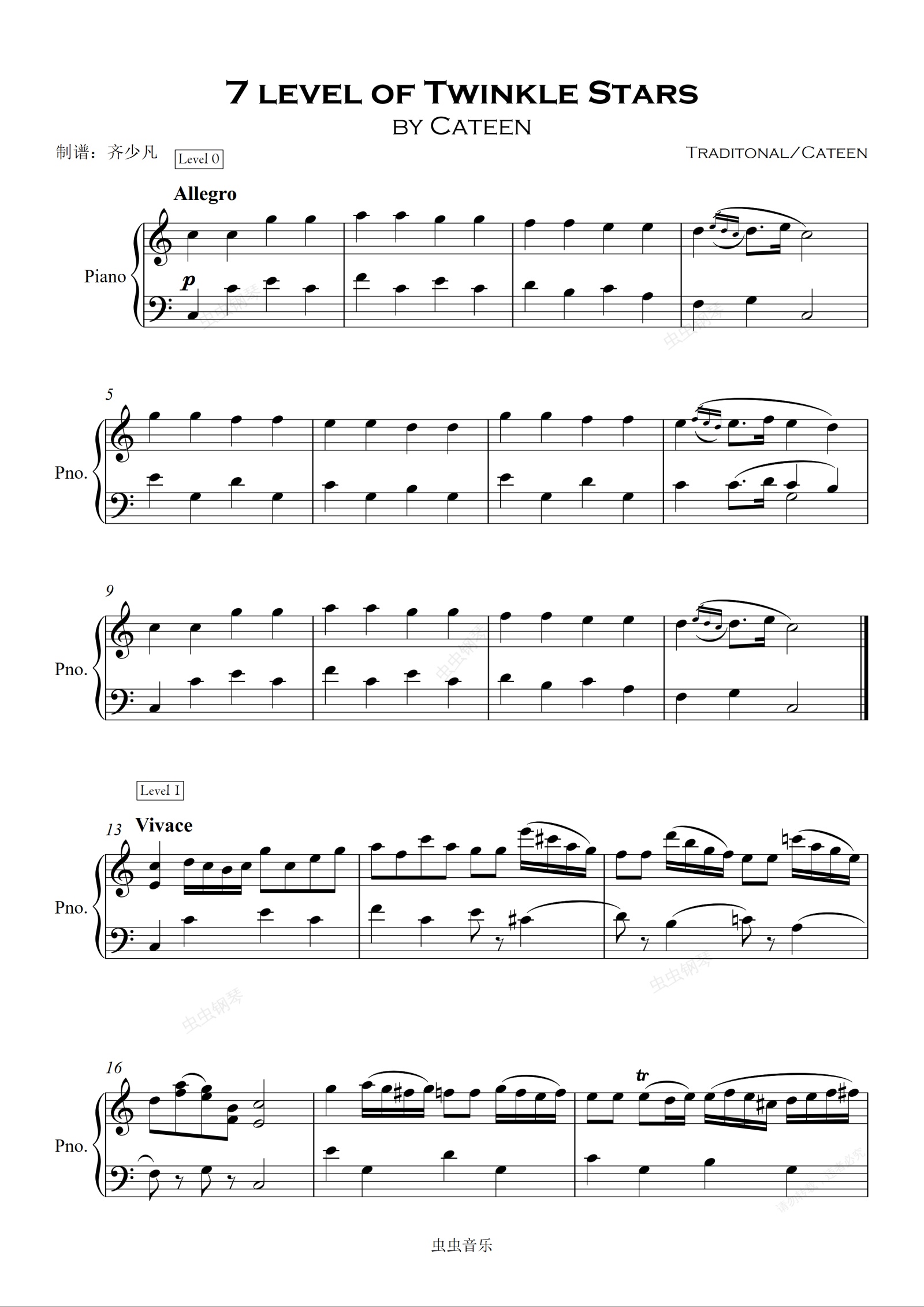 钢琴谱:Cateen弹奏《小星星》的7个等级