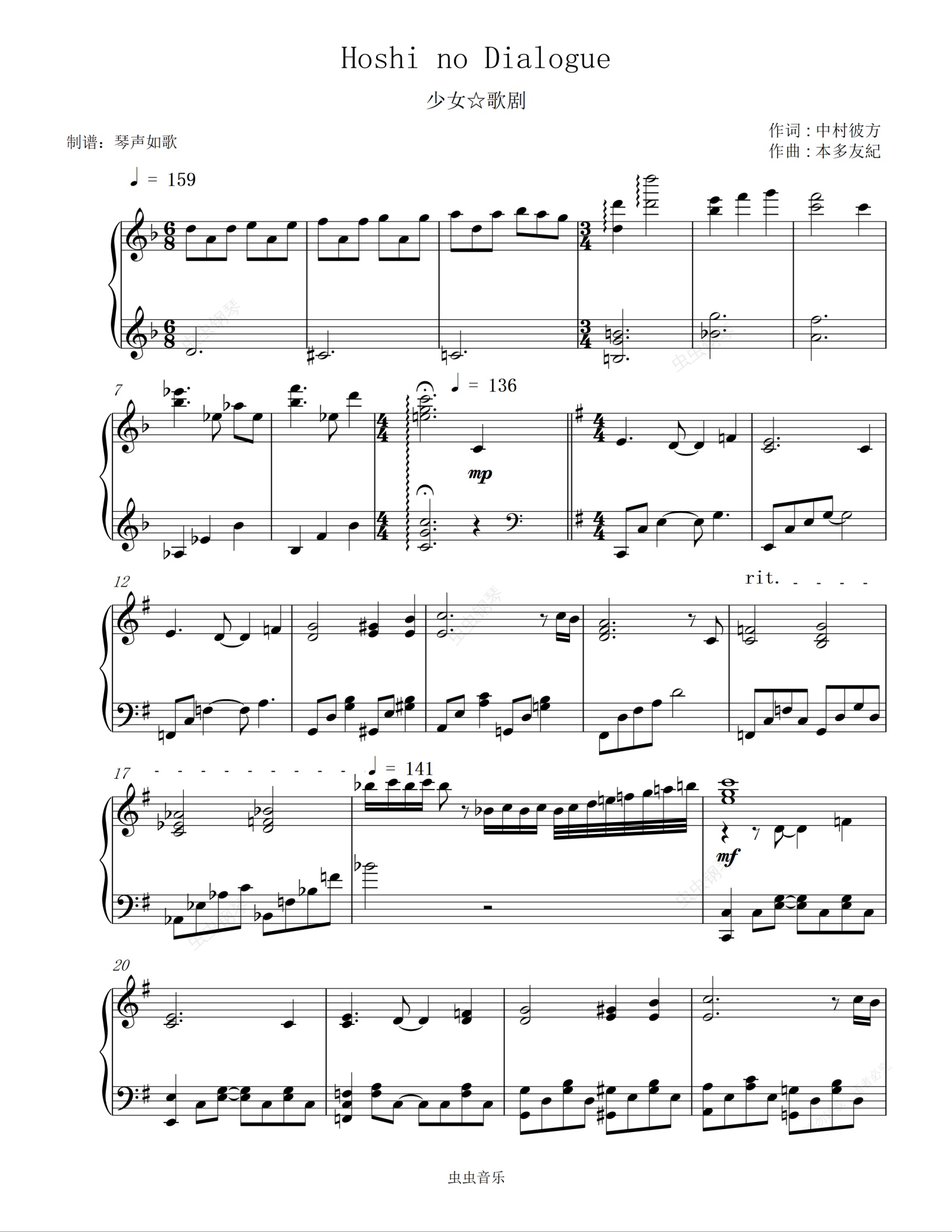 钢琴谱:少女☆歌剧-Hoshi no Dialogue