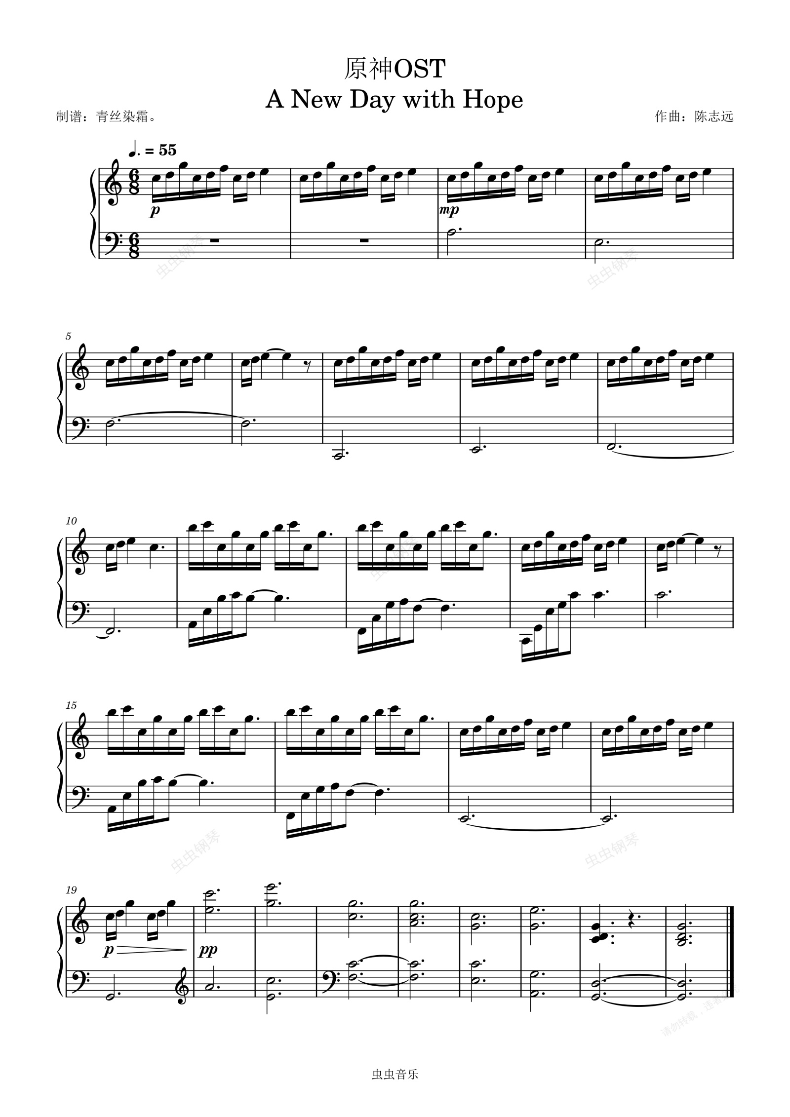 钢琴谱:希望的新一天-风与牧城OST