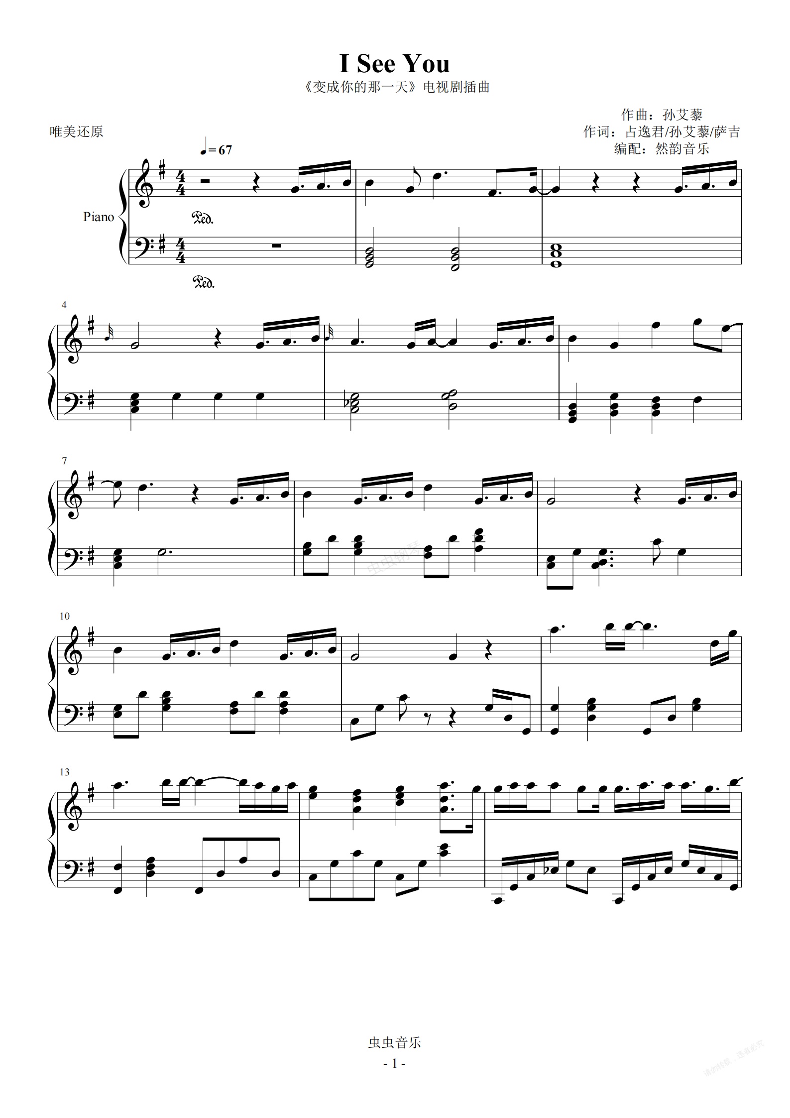 钢琴谱:I See You《变成你的那一天》电视剧插曲 钢琴唯美还原