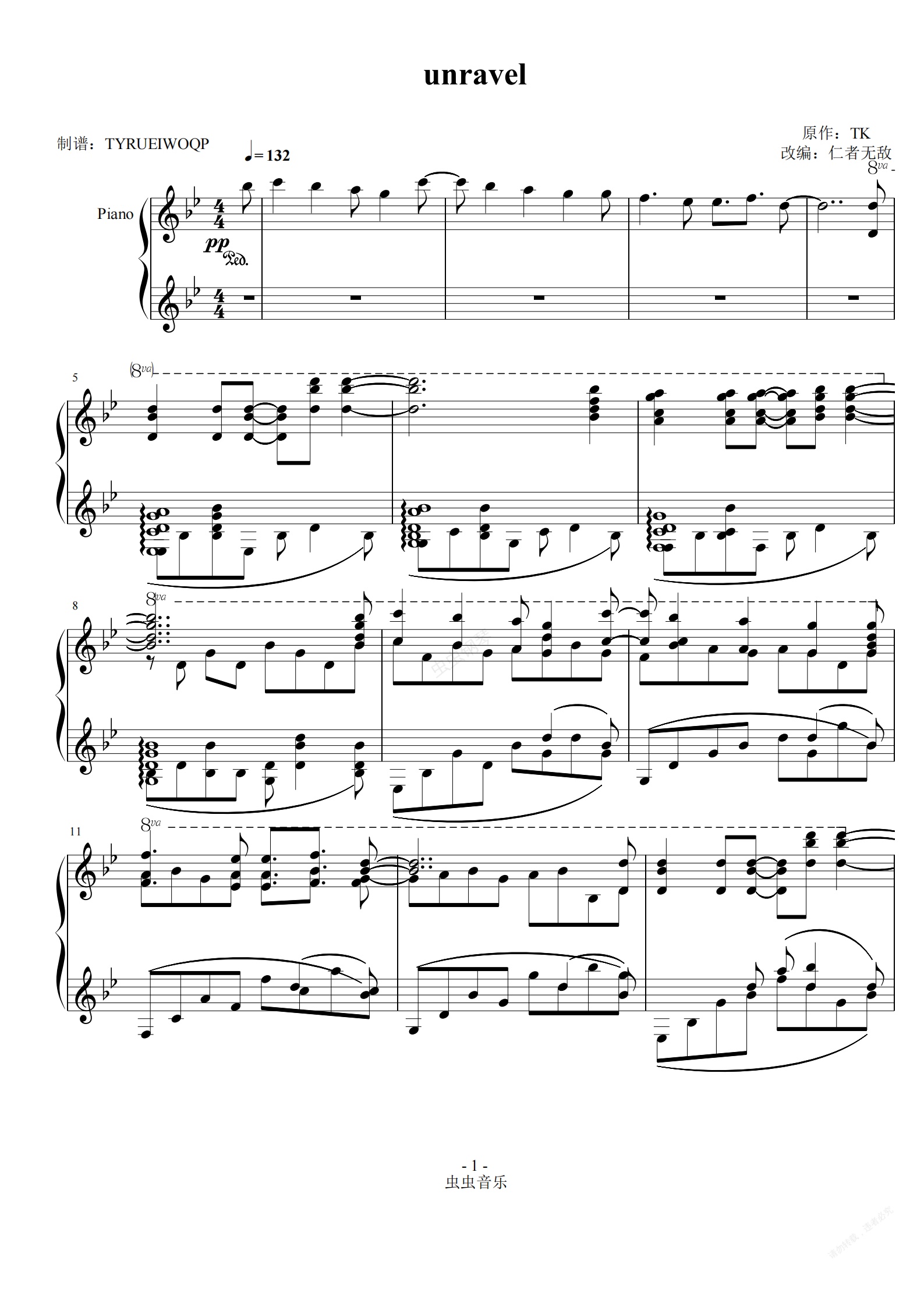 钢琴谱:unravel钢琴魔改版