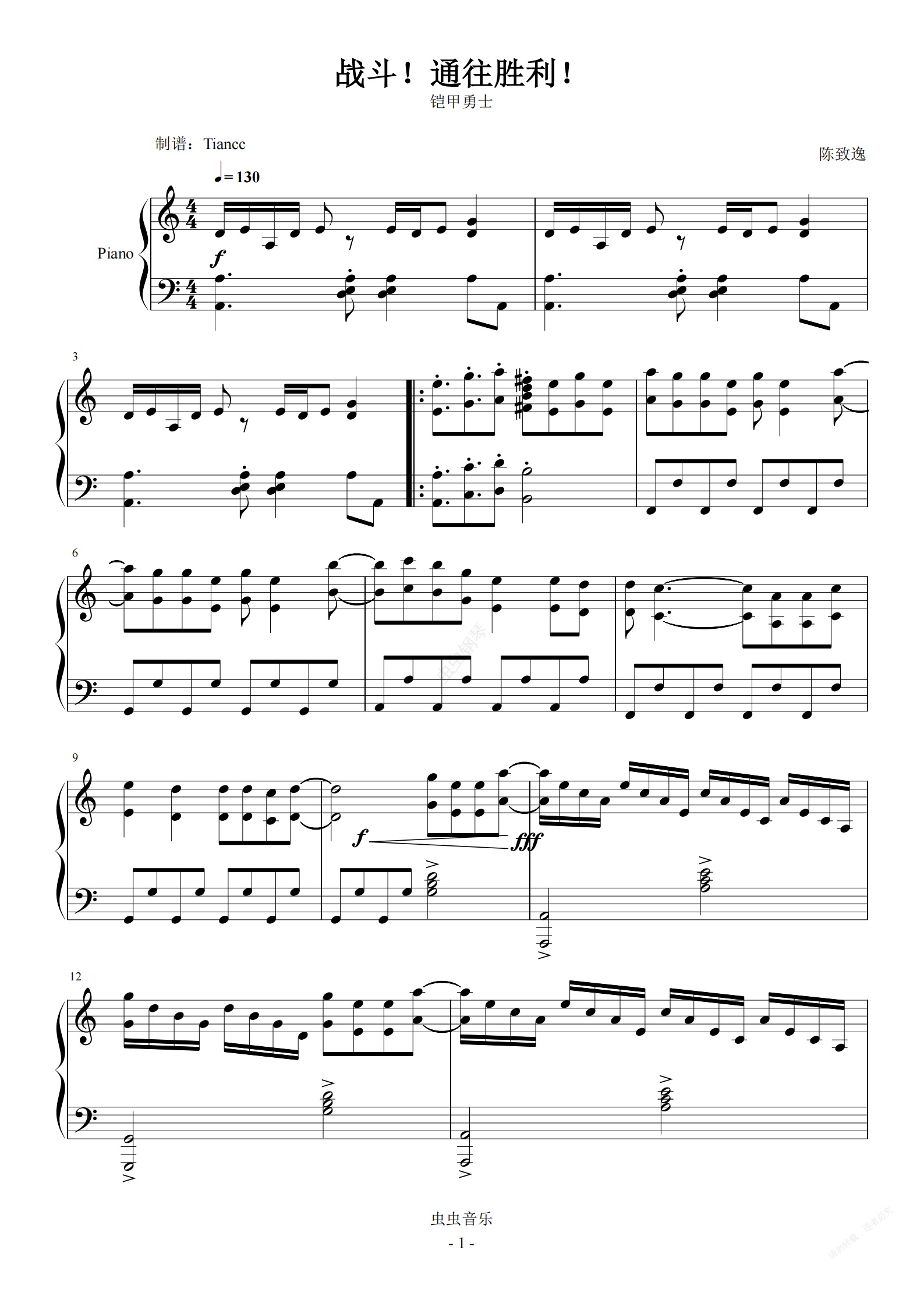 钢琴谱:《战斗--通往胜利》铠甲勇士!299+难度