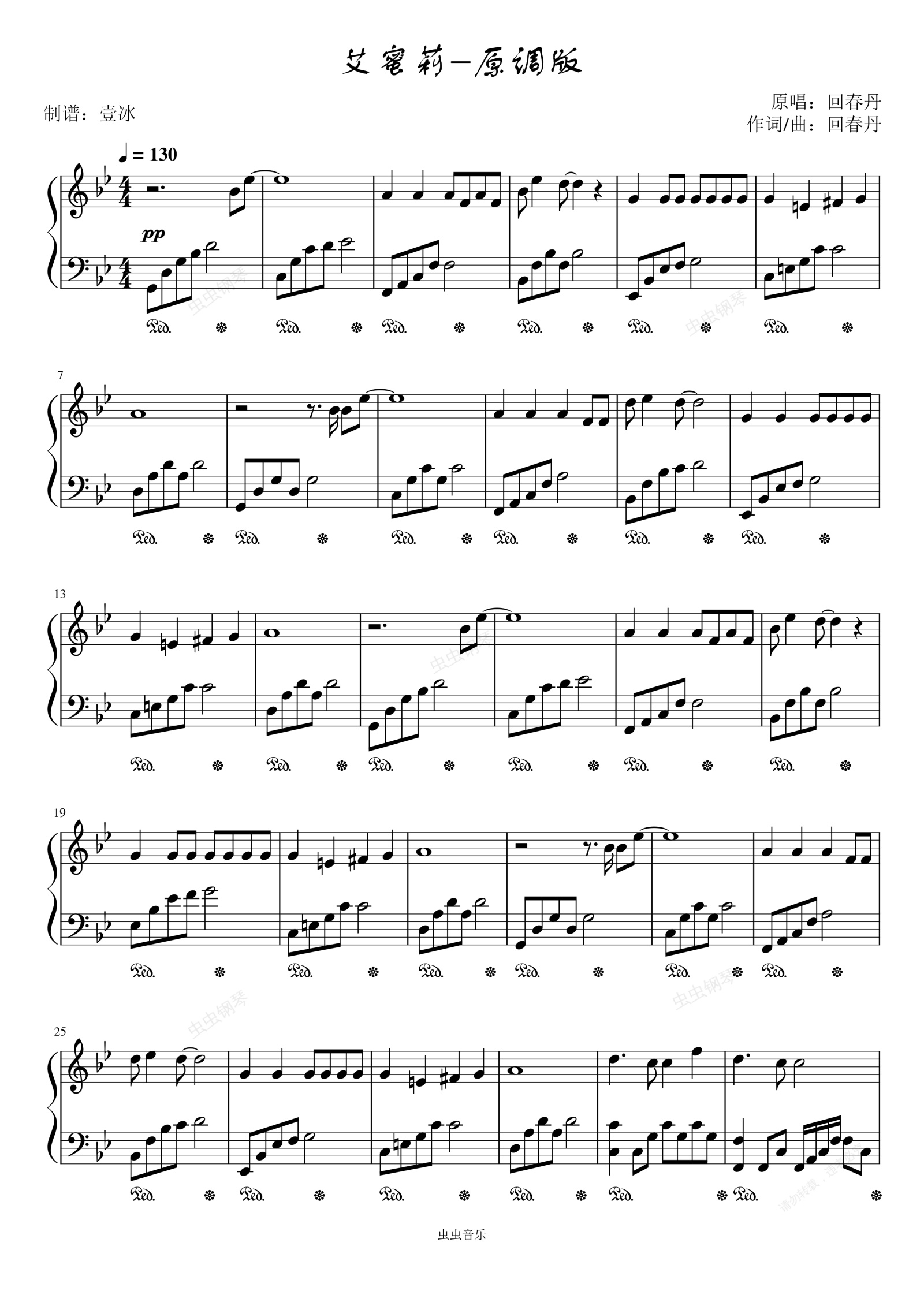 钢琴谱:艾蜜莉//回春丹-原调版
