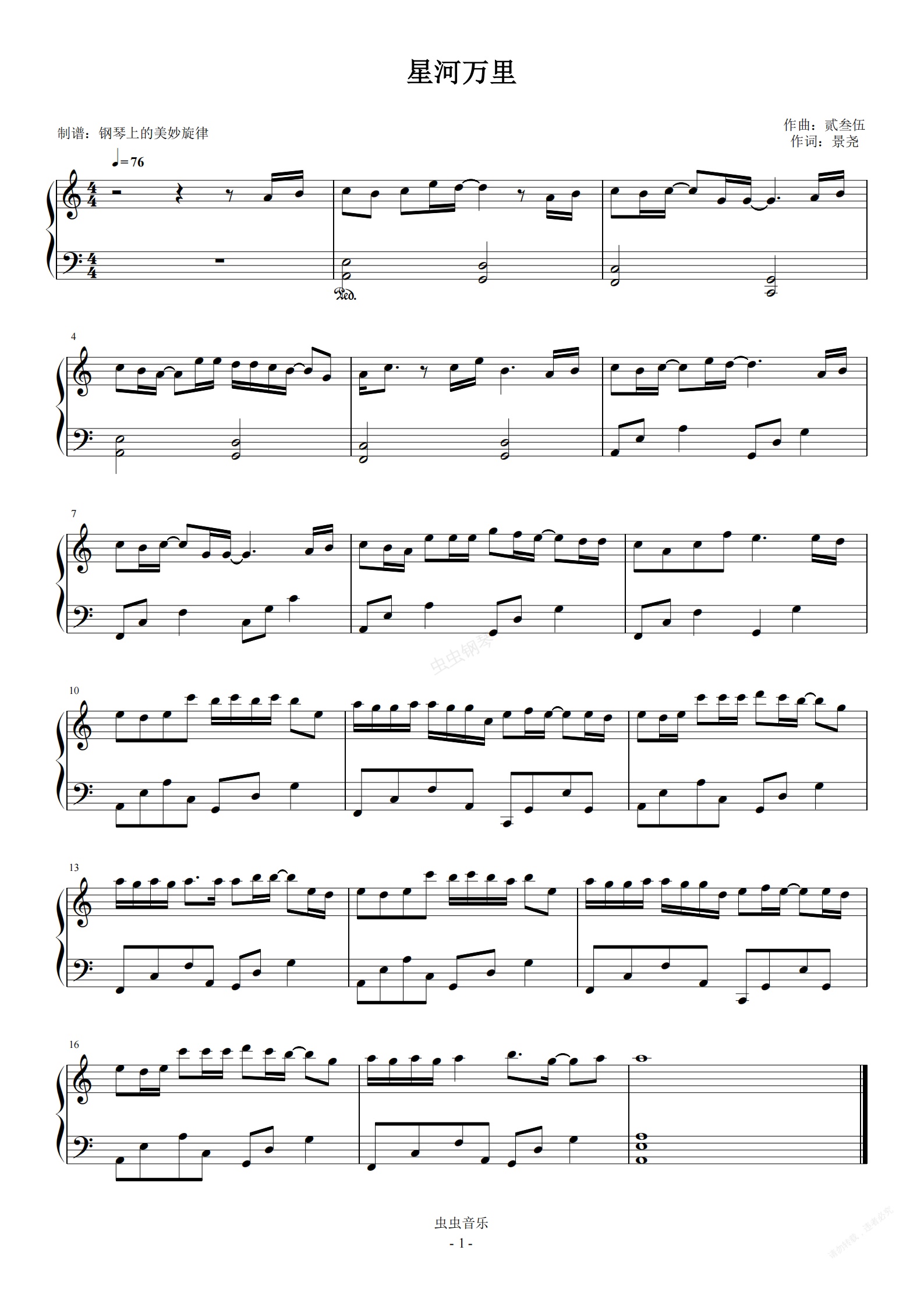 钢琴谱:《星河万里》C调简易版 Rom邢锐