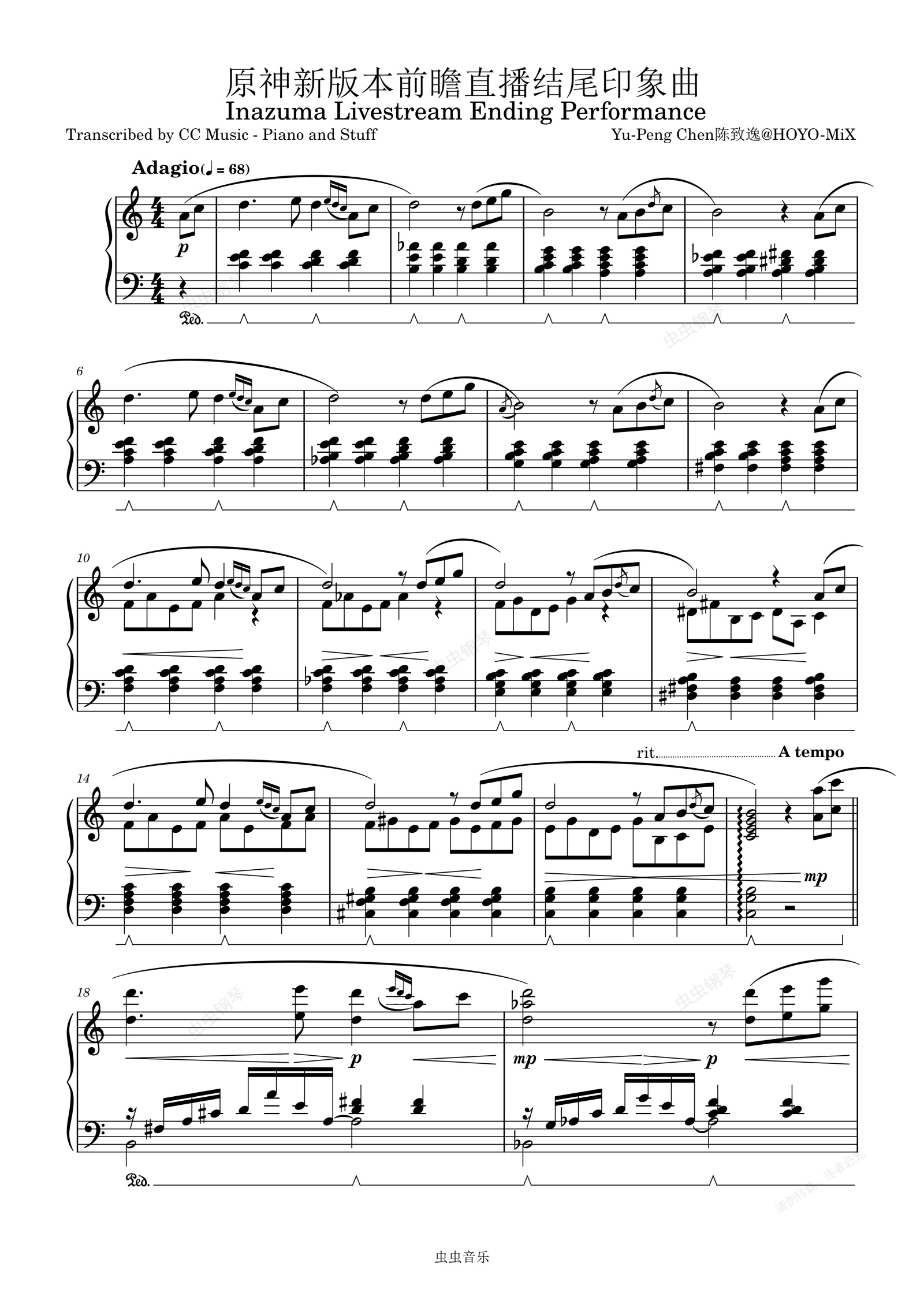 钢琴谱:【原神】2.0版本前瞻特别节目结尾印象曲