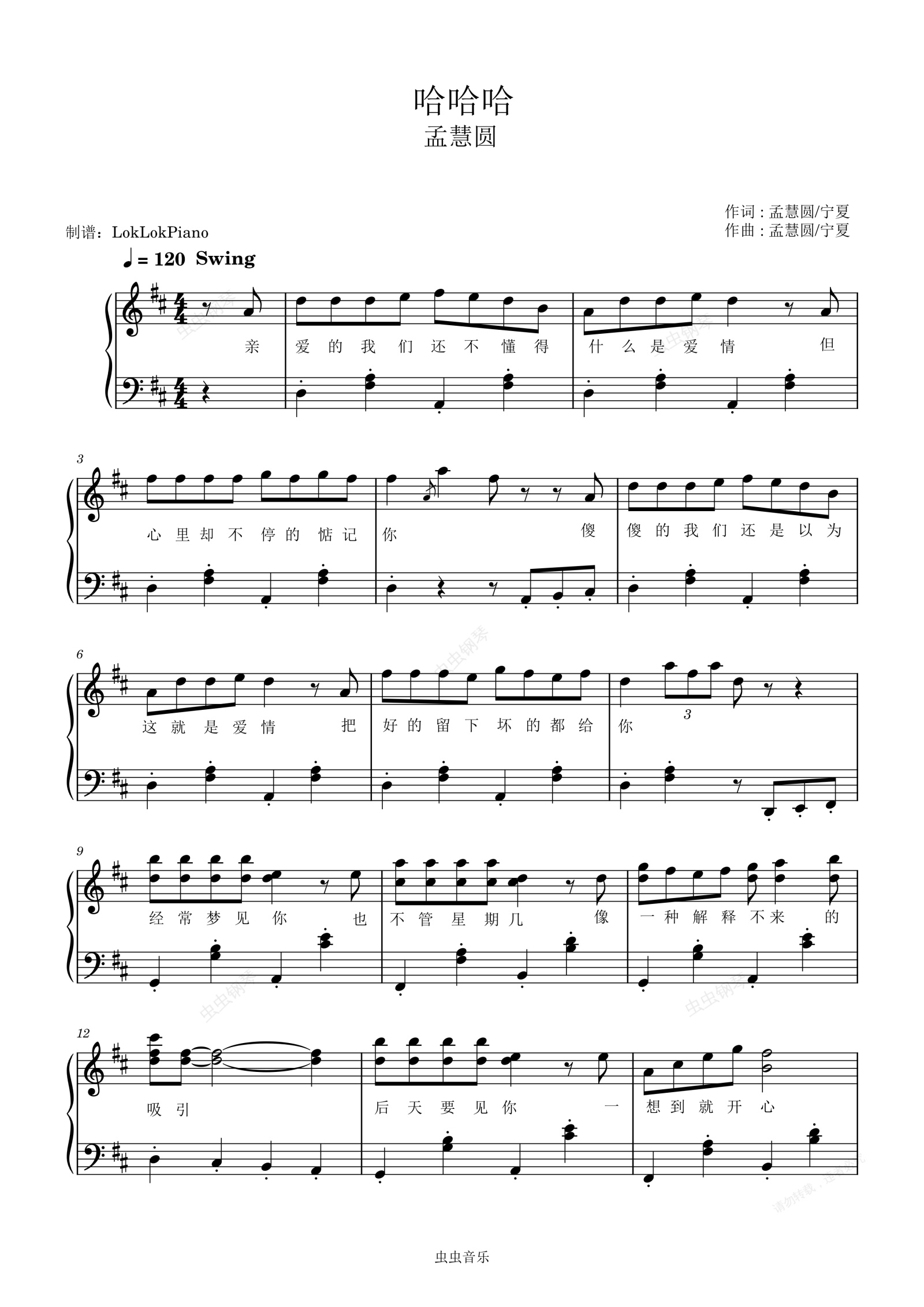 钢琴谱:哈哈哈 - 孟慧圆 | LokLokPiano演奏版