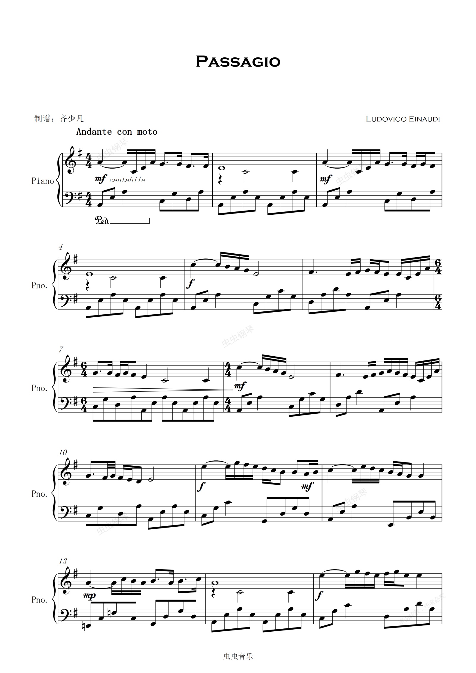 钢琴谱:唯美钢琴曲Passagio - Ludovico Einaudi