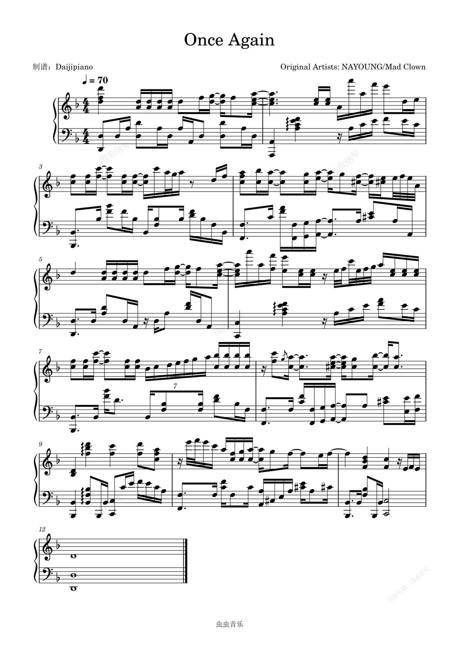 钢琴谱:太阳的后裔【Once Again】高燃副歌钢琴五线谱