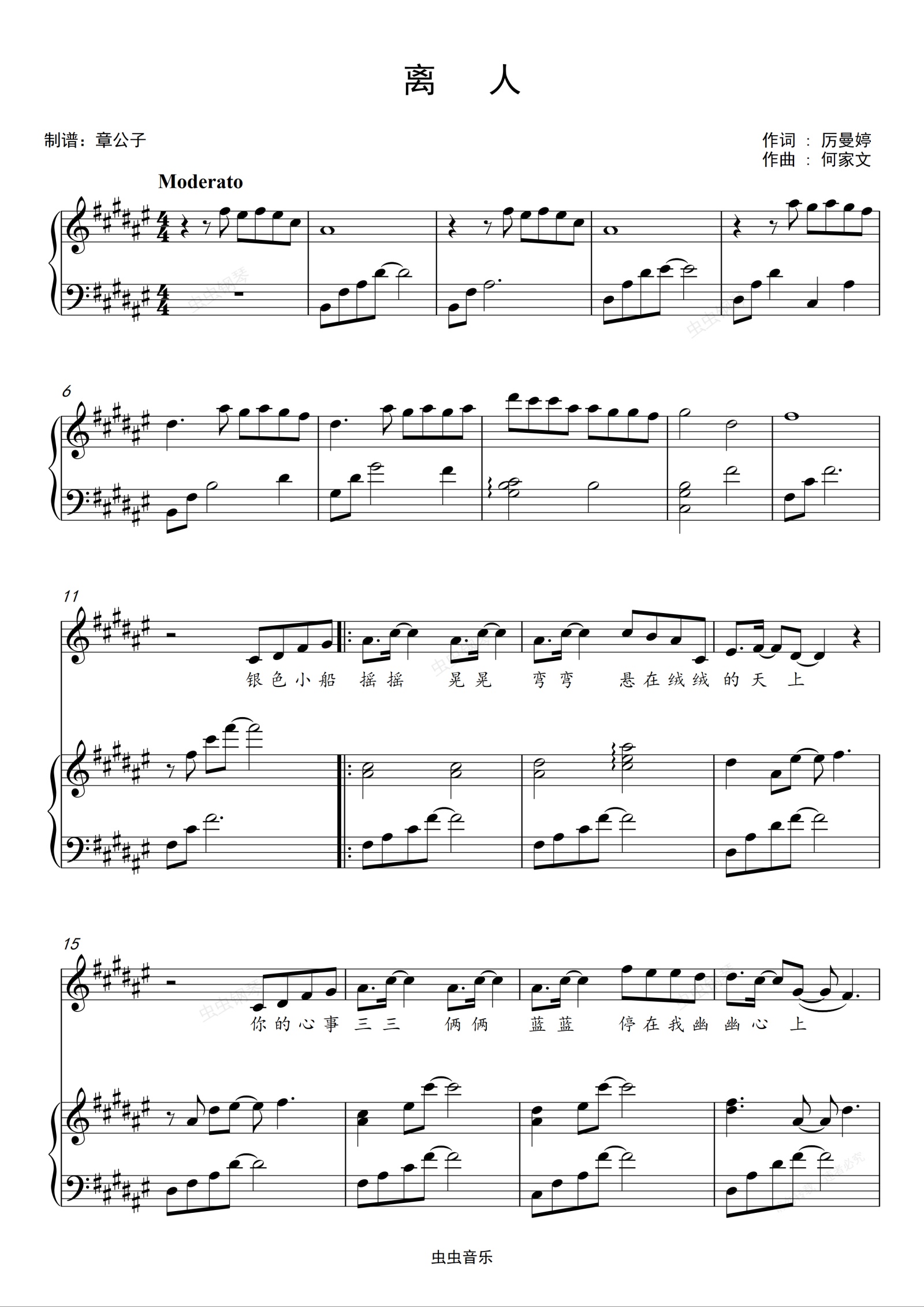 钢琴谱:离人 - 林志炫 完美弹唱(伴奏)谱#F调