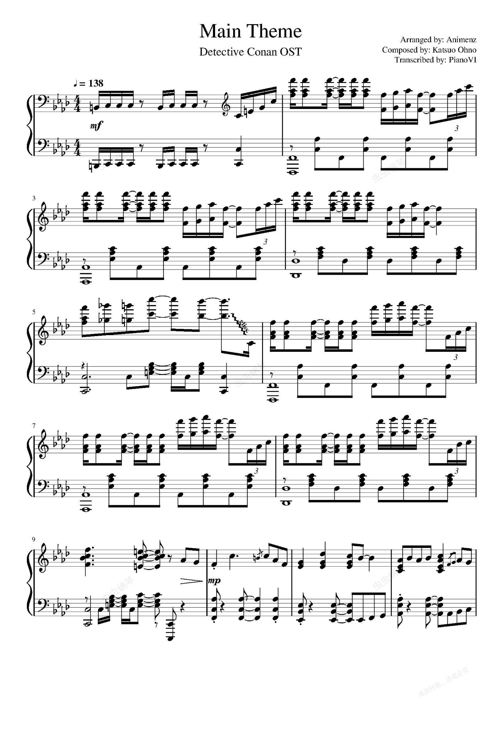 钢琴谱:名侦探柯南主题曲(名探偵コナン)