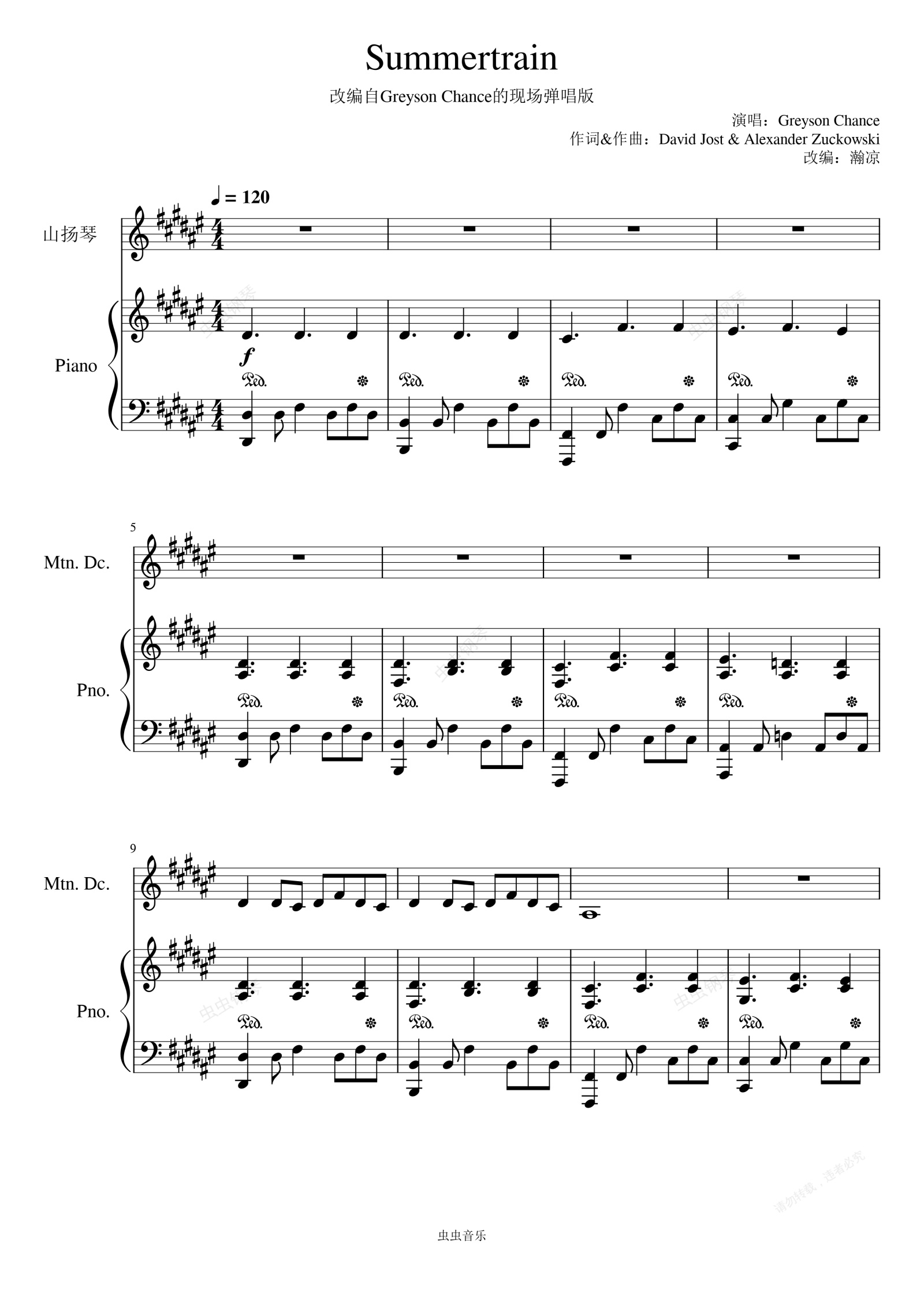 钢琴谱:Summertrain--Greyson Chance 弹唱版