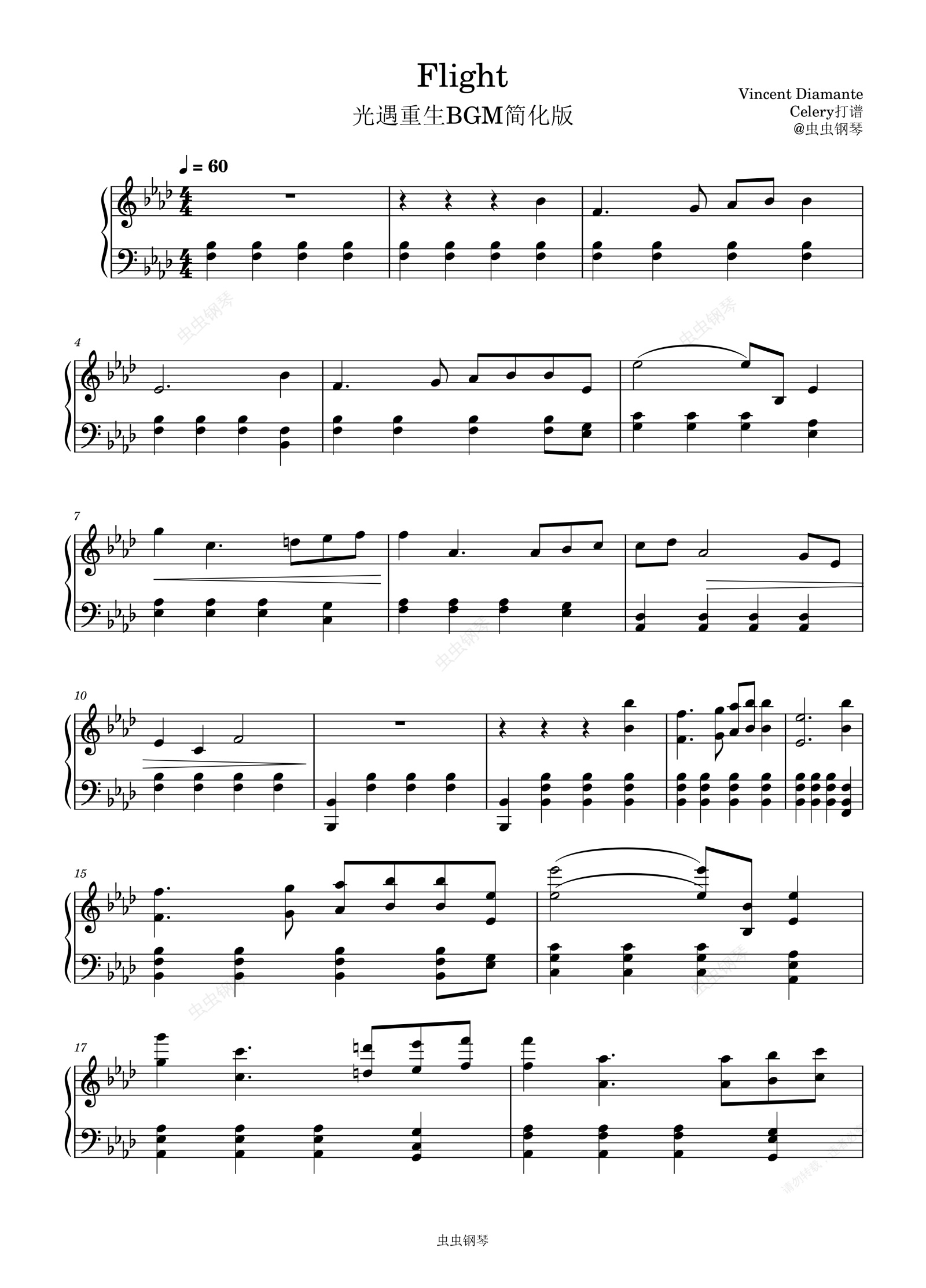 钢琴谱:光遇-sky-Flight-重生BGM简化版