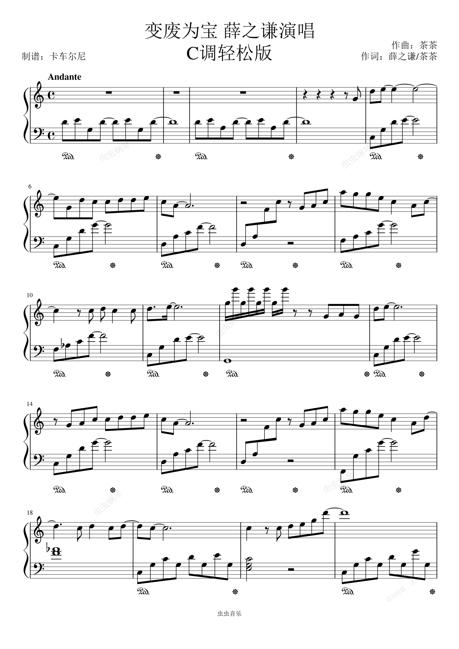 钢琴谱:变废为宝 C调轻松版 薛之谦演唱
